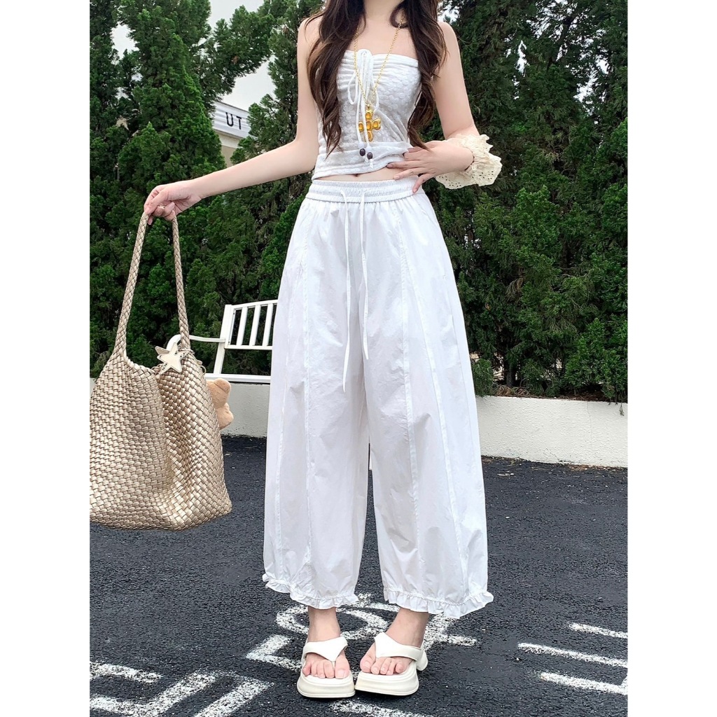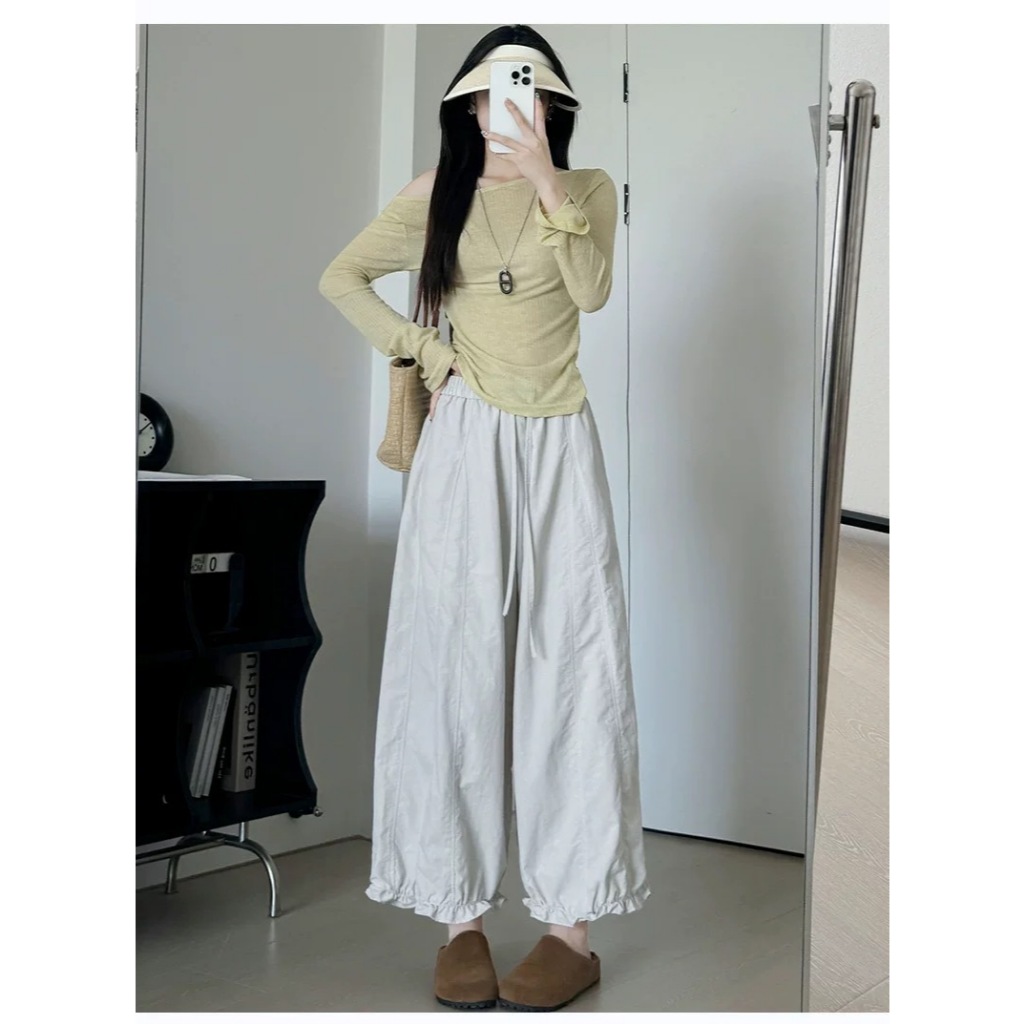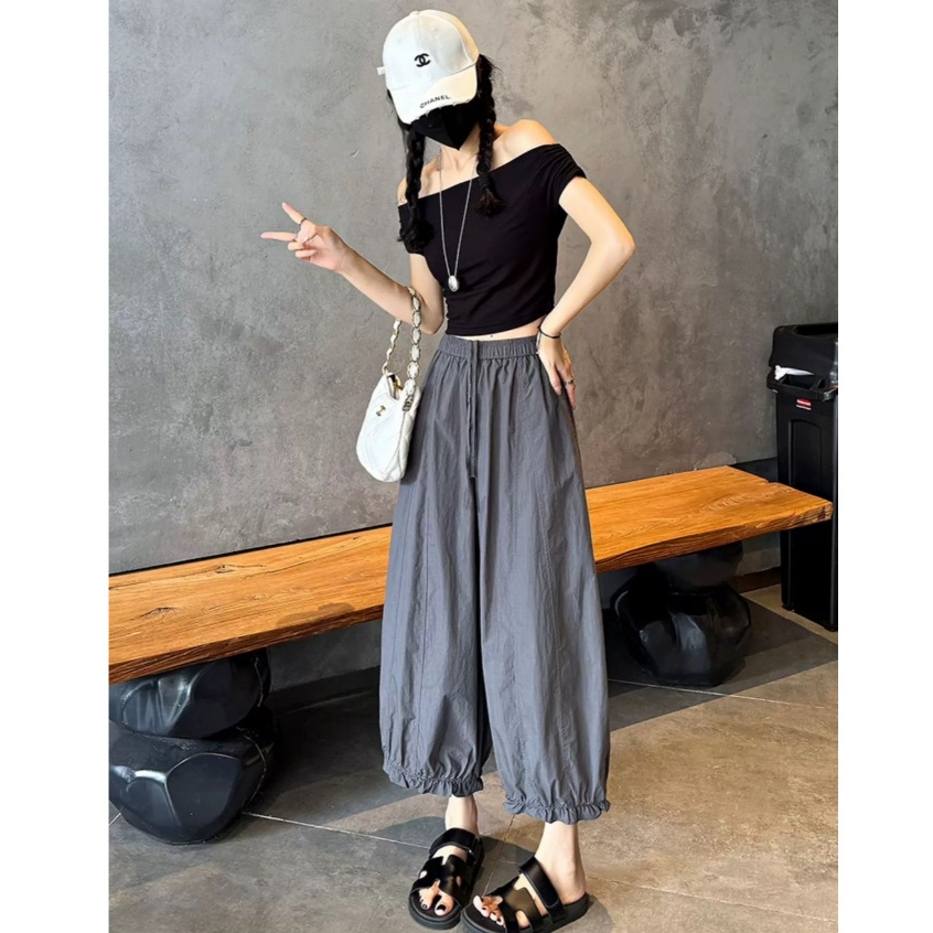 Reallyshops #9332(K) กางเกงขาบอลลูนยาว เอวยางยืด ผู้หญิง พร้อมส่ง