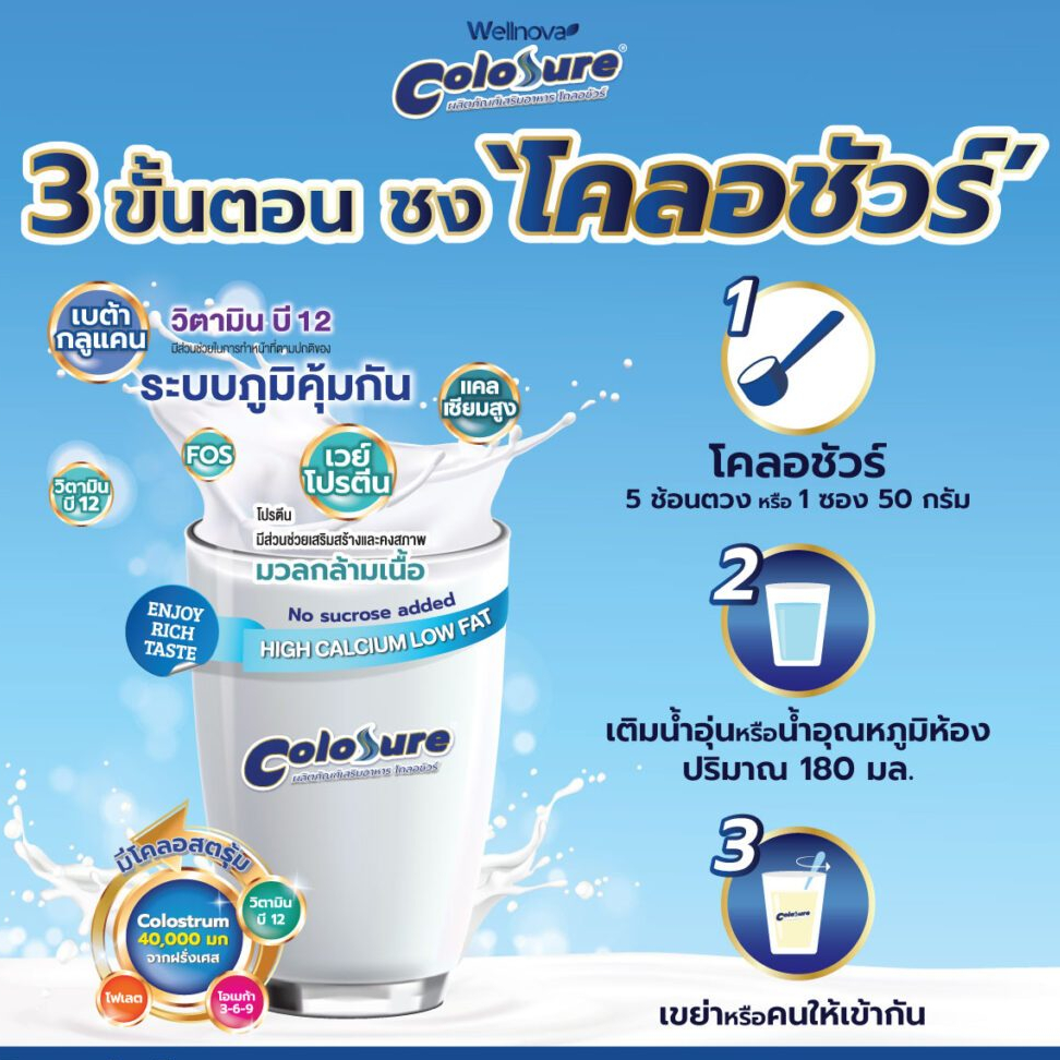 ใหม่ โคลอชัวร์ (Colosure) ครั้งแรกของ นวัตกรรม ผลิตภัณฑ์เสริมอาหาร มีโคลอสตรุ้ม พร้อมด้วยสารอาหาร ครบ 5 หมู่