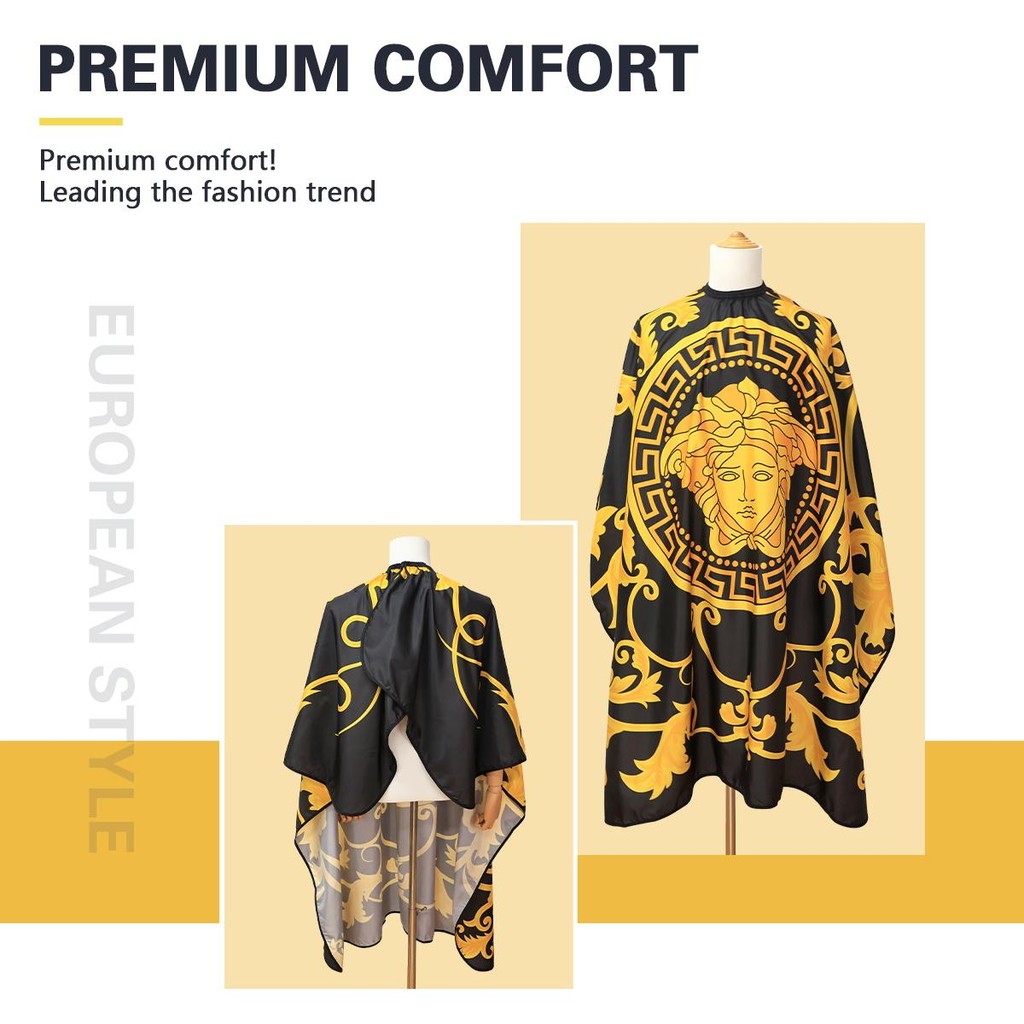 แฟชั่นพิมพ์ตัดผมเอี๊ยมขนาดใหญ่และหนาร้านทําผมมืออาชีพเอี๊ยมบ้านระบายอากาศลายดัดย้อมผมผ้าคลุมไหล่