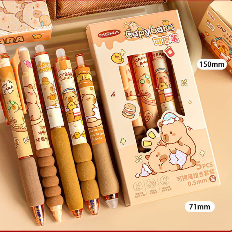 ?ส่งจากกรุงเทพฯ?ปากกาลูกลื่นสำนักงานสำหรับนักเรียนสุดน่ารัก 5 ด้าม พร้อมปากกาบัฟเฟอร์หมึกแห้งสีน้ำเงิน ST ที่ลบได้