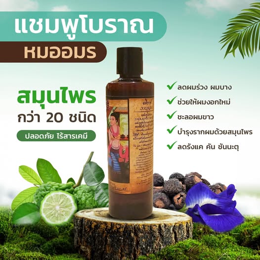 แชมพูสมุนไพรโบราณ ผลิตจากสมุนไพรแท้ 20 ชนิด ทั้งสมุนไพรสดและแห้ง คัดสรรอย่างพิถีพิถันตามสูตรหมออมร ผ่านกรรมวิธีเคี่ยวด้วยเตาถ่านนานกว่า 6 ชั่วโมง เพื่อคงสรรพคุณสูงสุดโดยไม่ใช้เครื่