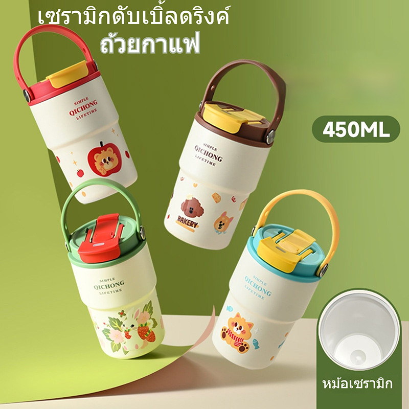 316 สแตนเลส ถ้วยกาแฟ ซับเซรามิก ความจุขนาดใหญ่ กระติกน้ําร้อนแบบพกพา ถ้วยสํานักงาน ความร้อนและรักษาความเย็น การออกแบบเครื่องดื่มคู่ ป้องกันการรั่ว ของขวัญหรูหร