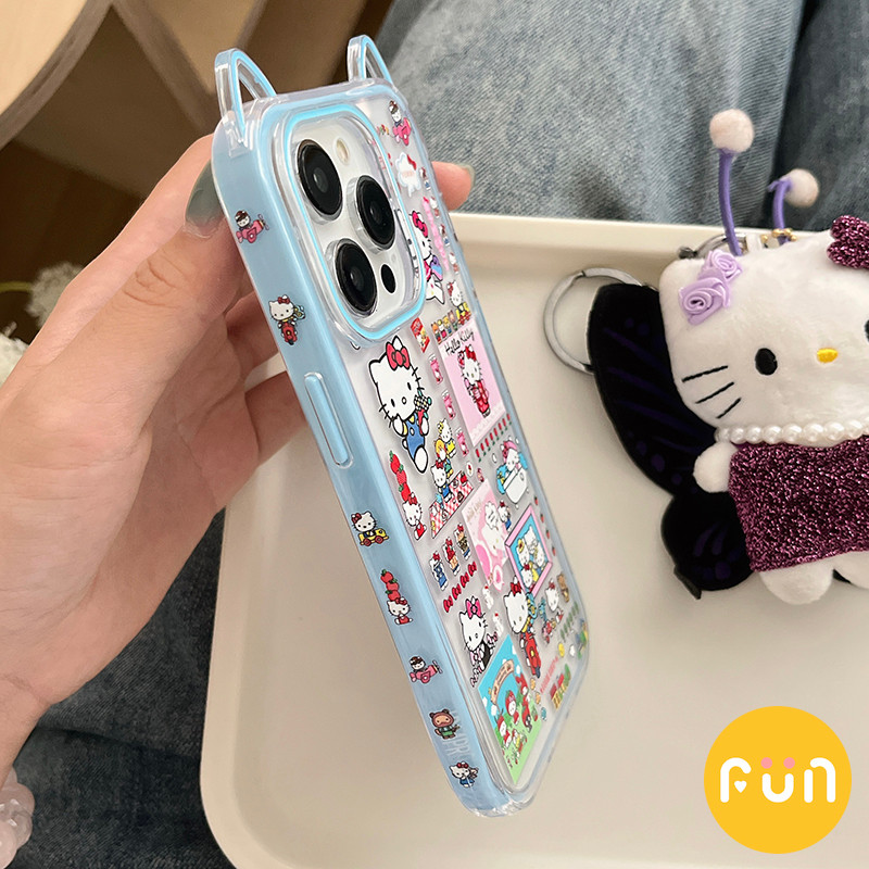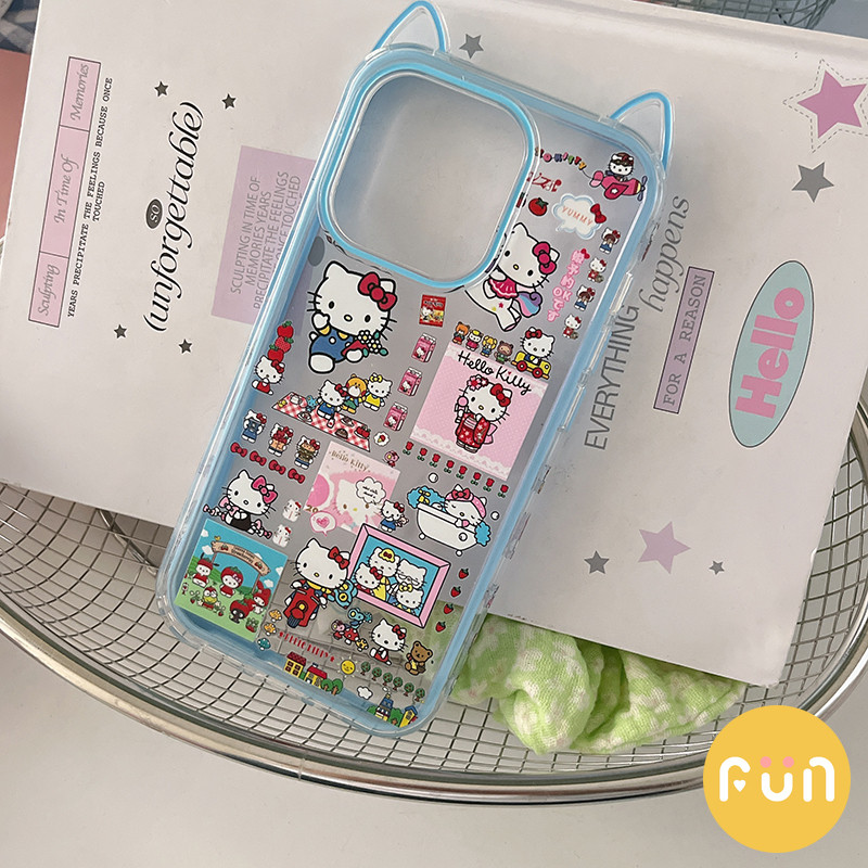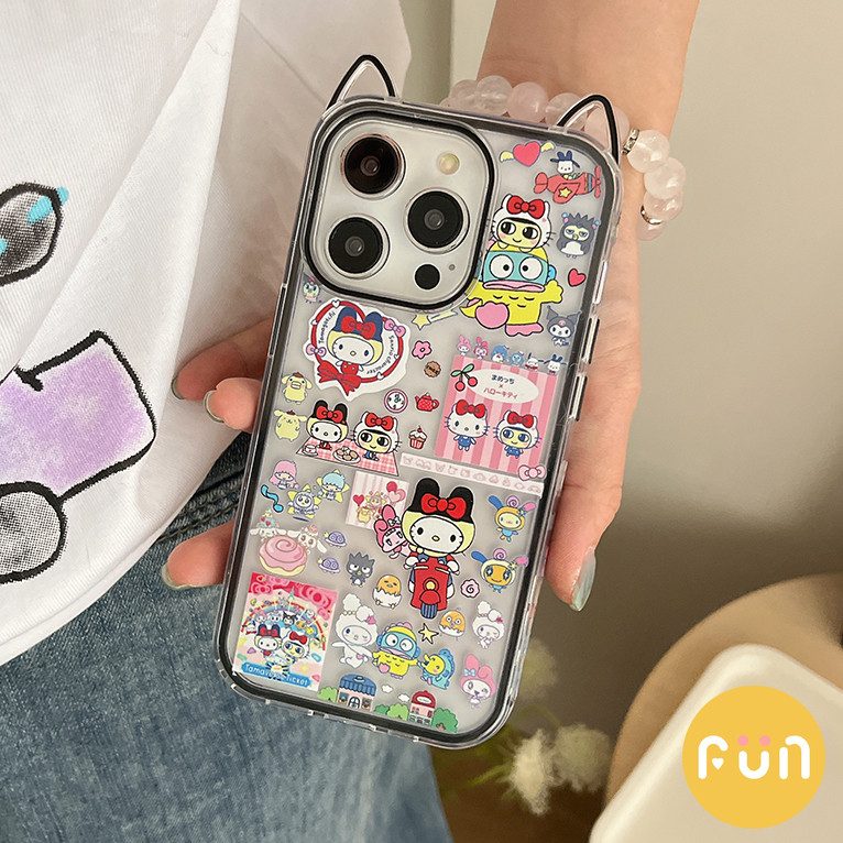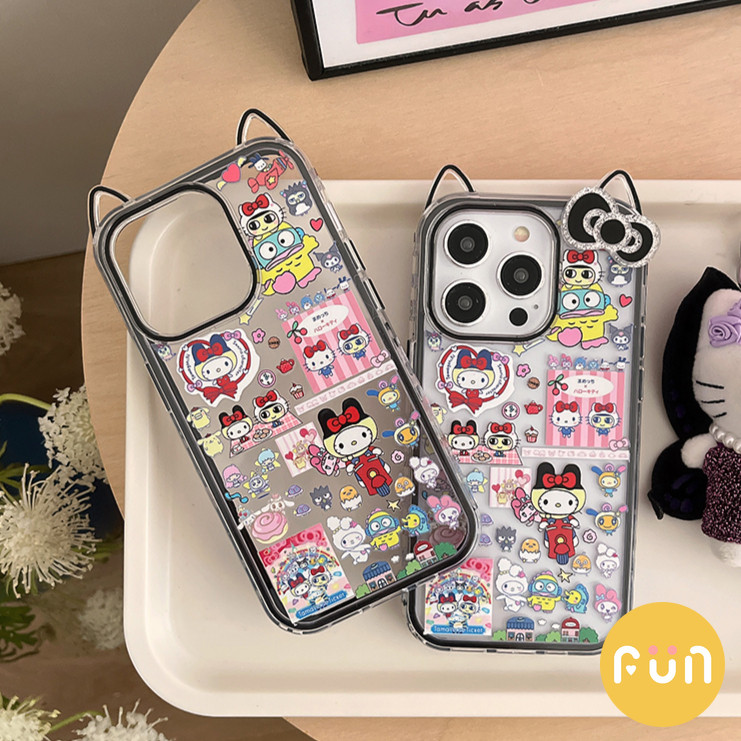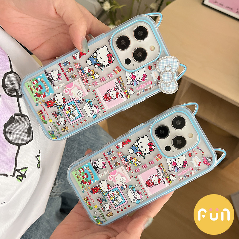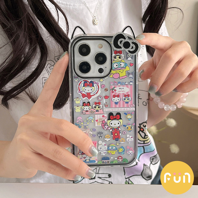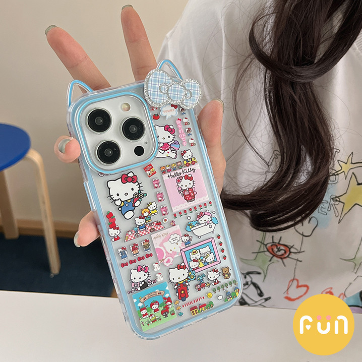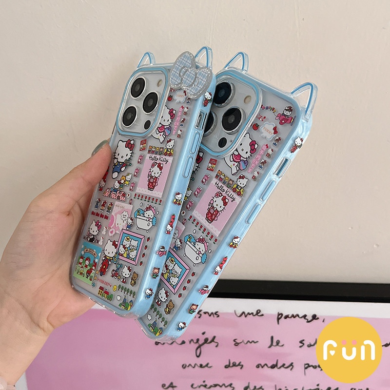 Kawaii 3D Bowknot Hangyodon Hello Kitty หูแมวเคสโทรศัพท์สําหรับ iPhone 16 15 14 Pro Max 13 Soft TPU ฝาหลังปลอกกันกระแทก