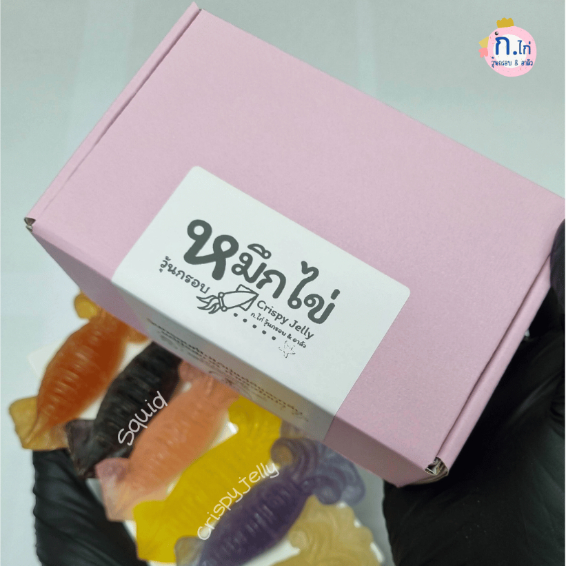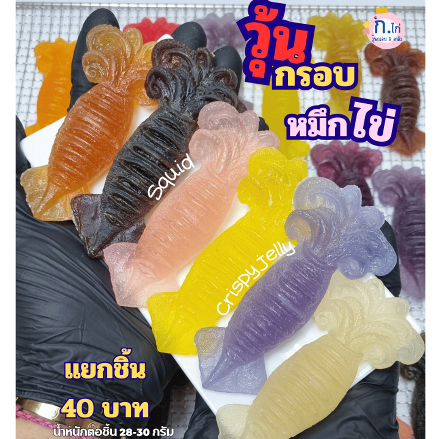 รอบส่ง26 ธ.ค.วุ้นกรอบหมึกไข่ ซื้อแยก40บ/ตัว กล่อง5ชิ้น(155บ.)ถ้ามีสินค้าจะส่งเลย หากไม่มีพรีเดอร์7วัน