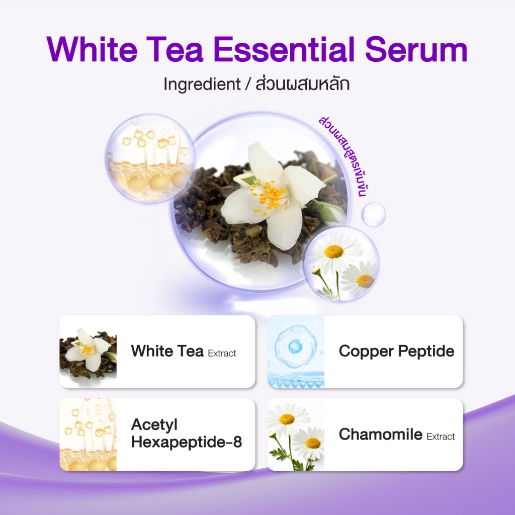 ✨ เซรั่มบำรุงผิวสูตรชาขาว ผสานสารสกัด Anti-aging 4 ชนิด พร้อมวิตามินซี