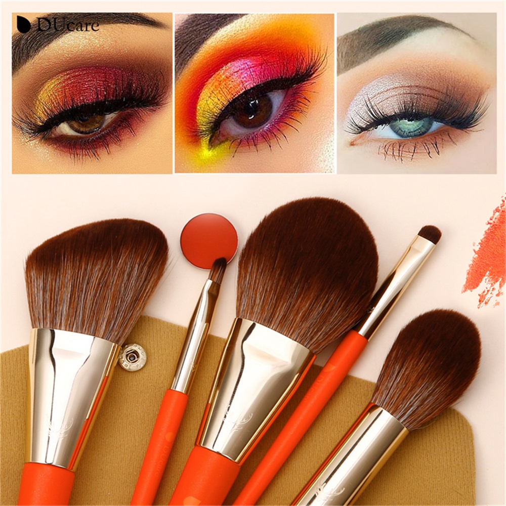 DUCARE 9 ชิ้นชุดแปรงแต่งหน้าพร้อมกระเป๋าอายแชโดว์ Foundation Powder Contour Make Up Brush เครื่องสําอางชุดเครื่องมือความงาม