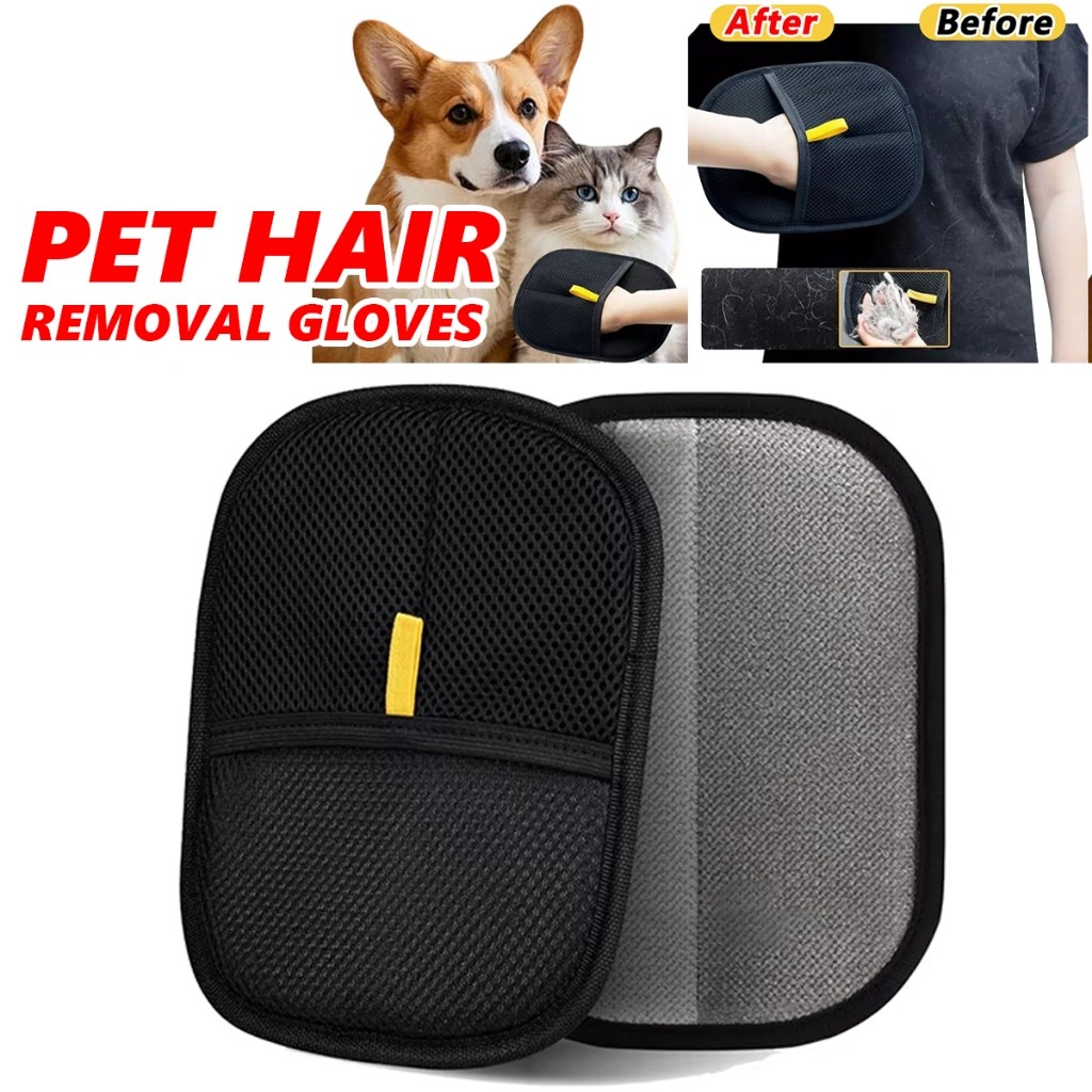 ถุงมือกําจัดขนไฟฟ้าสถิตสําหรับสัตว์เลี้ยง ขนแปรงสองทาง สำหรับแมว หมา ใช้ง้าย