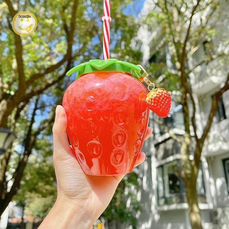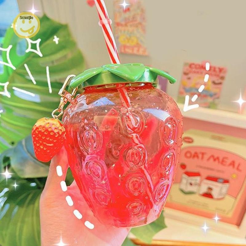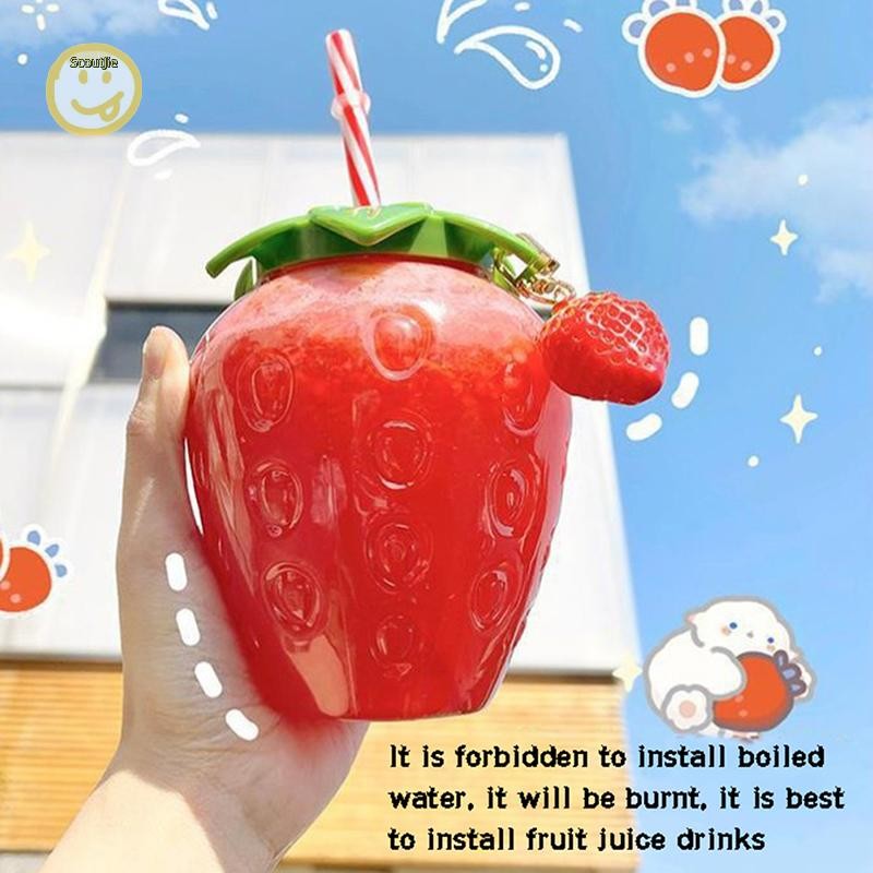 ScoutJie 500ml ฤดูร้อนน่ารักสตรอเบอร์รี่ฟางขวดน้ํากาแฟนมถ้วยฟางสําหรับบ้าน TH