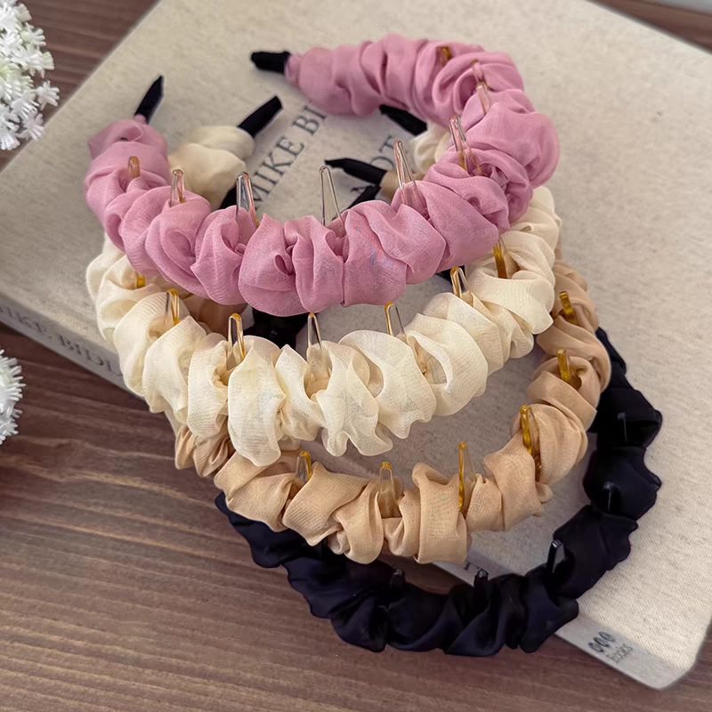 ที่คาดผมผ้าก๊อซฟองเมฆสีทึบสำหรับผู้หญิง ใช้อเนกประสงค์และหรูหรา