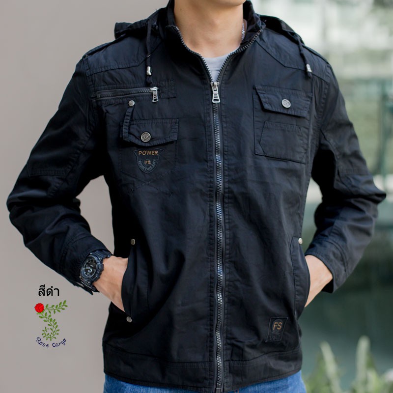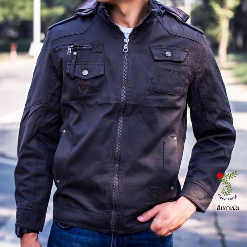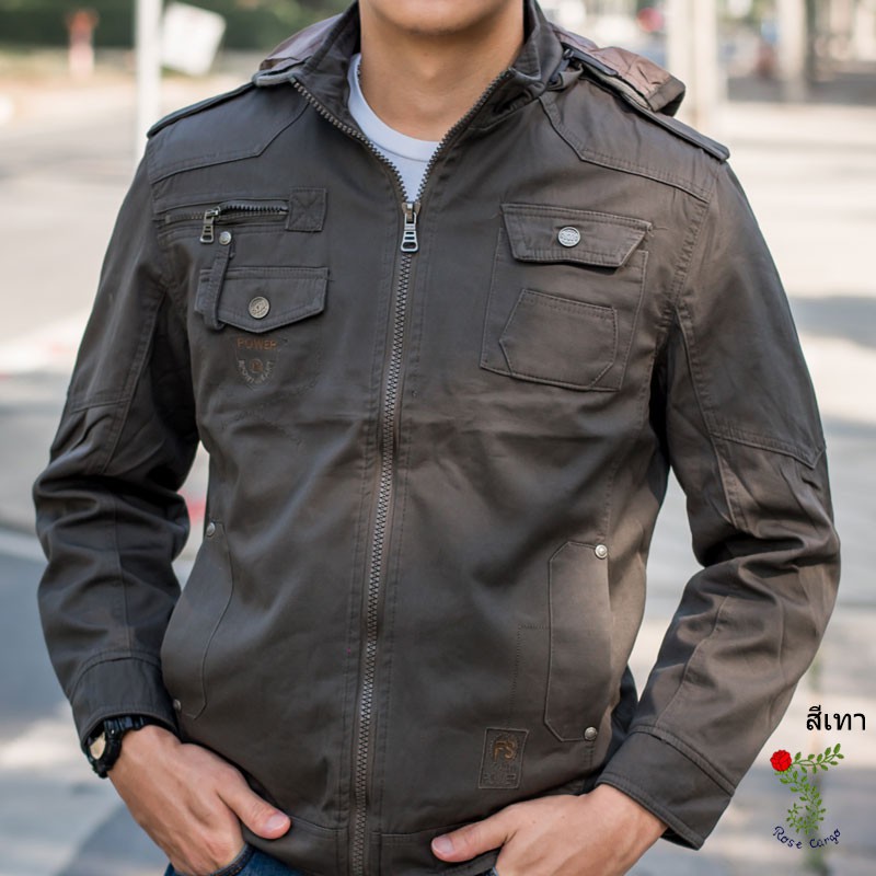 เสื้อแจ็คเก็ตชายเท่ๆ มีฮู้ด (ตัวฮู้ดมีซิปถอดได้)