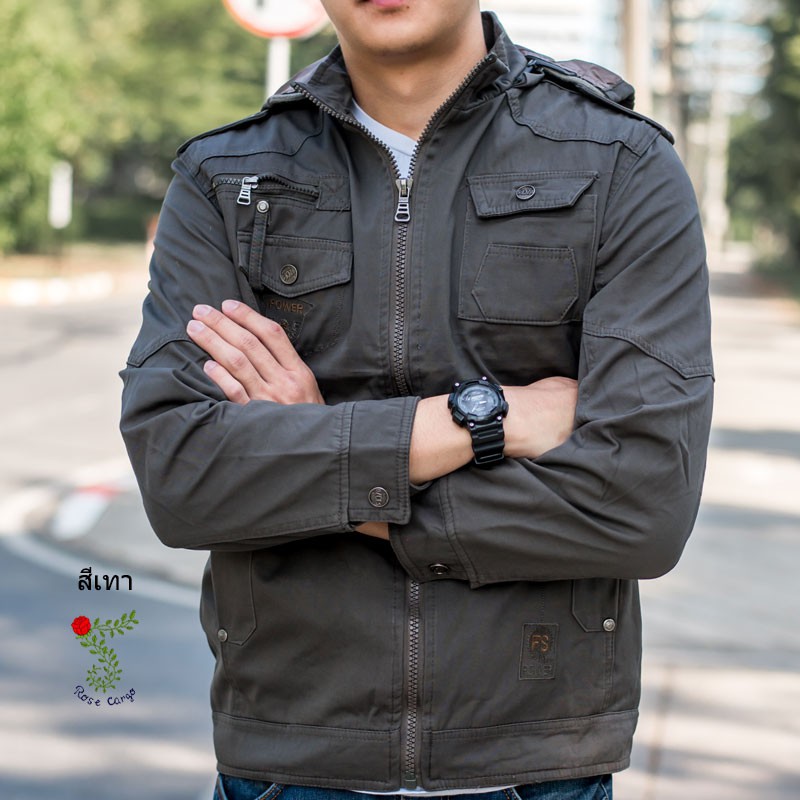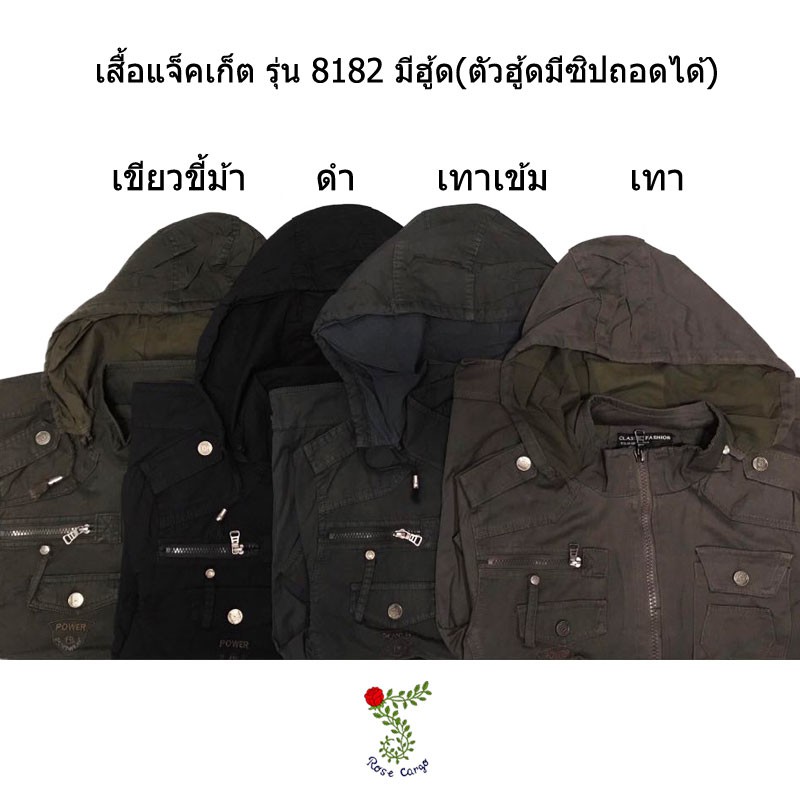 เสื้อแจ็คเก็ต มีฮู้ด (ตัวฮู้ดมีซิปถอดได้)รุ่น 8182 มี 4 สี สีเขียวขี้ม้า, สีดำ, สีเทาเข้ม, สีเทา