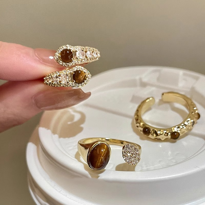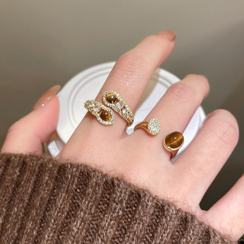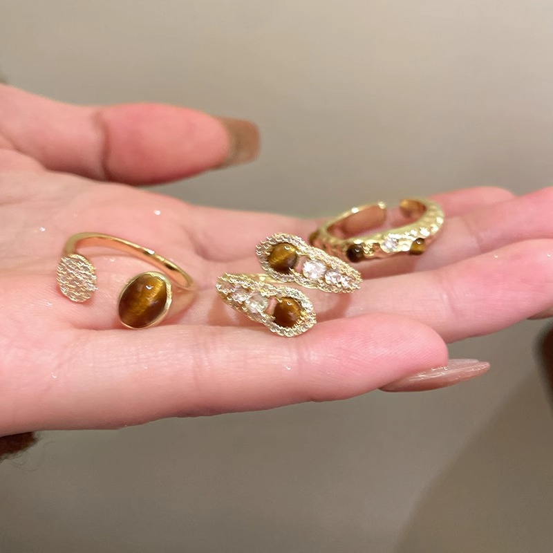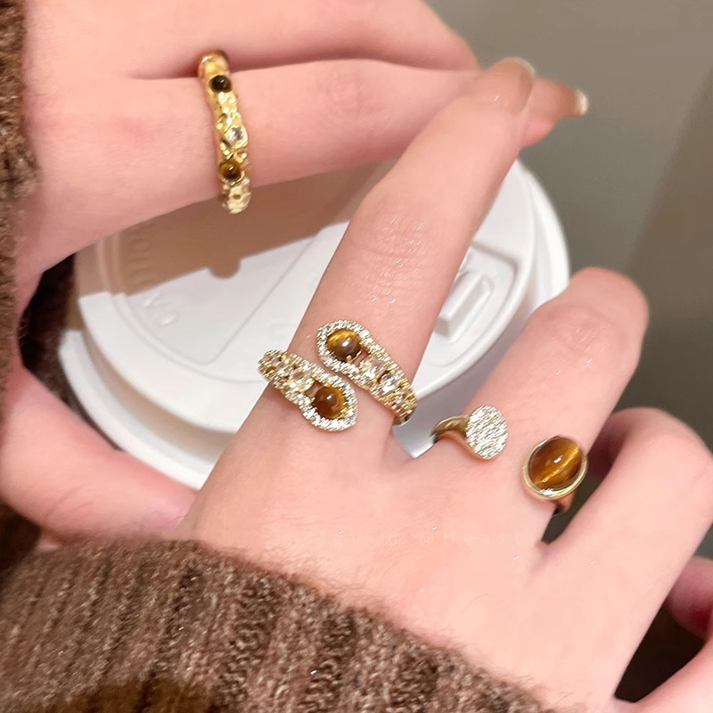 แฟชั่น เกาหลีเพชรเสือตาหินแหวนหญิงสีทอง อิน ของขวัญวันเกิดนักเรียน
