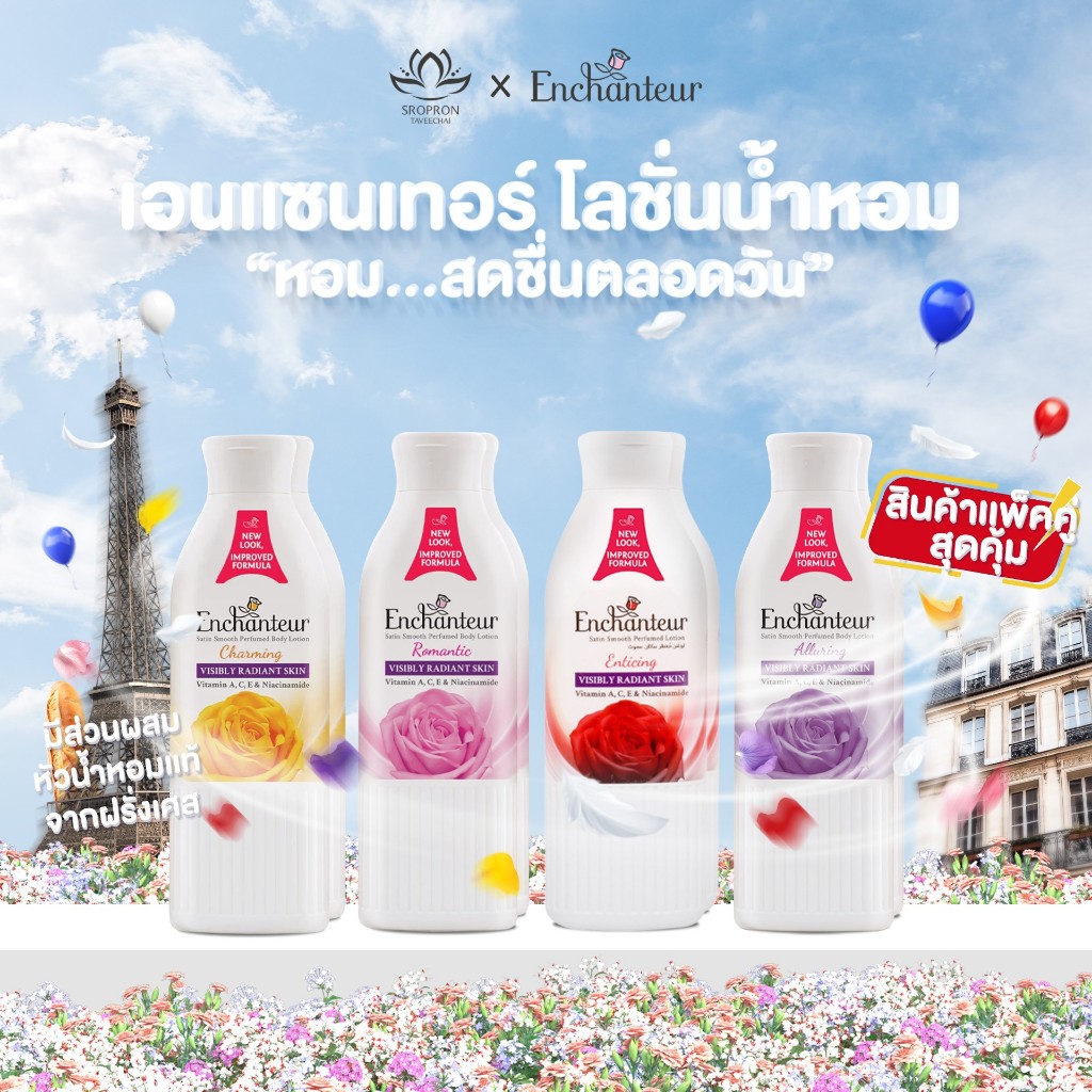 เอนแชนเทอร์ โลชั่นน้ำหอมสูตรวิตามิน A, C, E และไนอาซินาไมด์ กลิ่นสตันนิ่ง 500 มล. มี 4 กลิ่น
