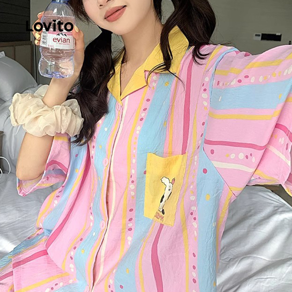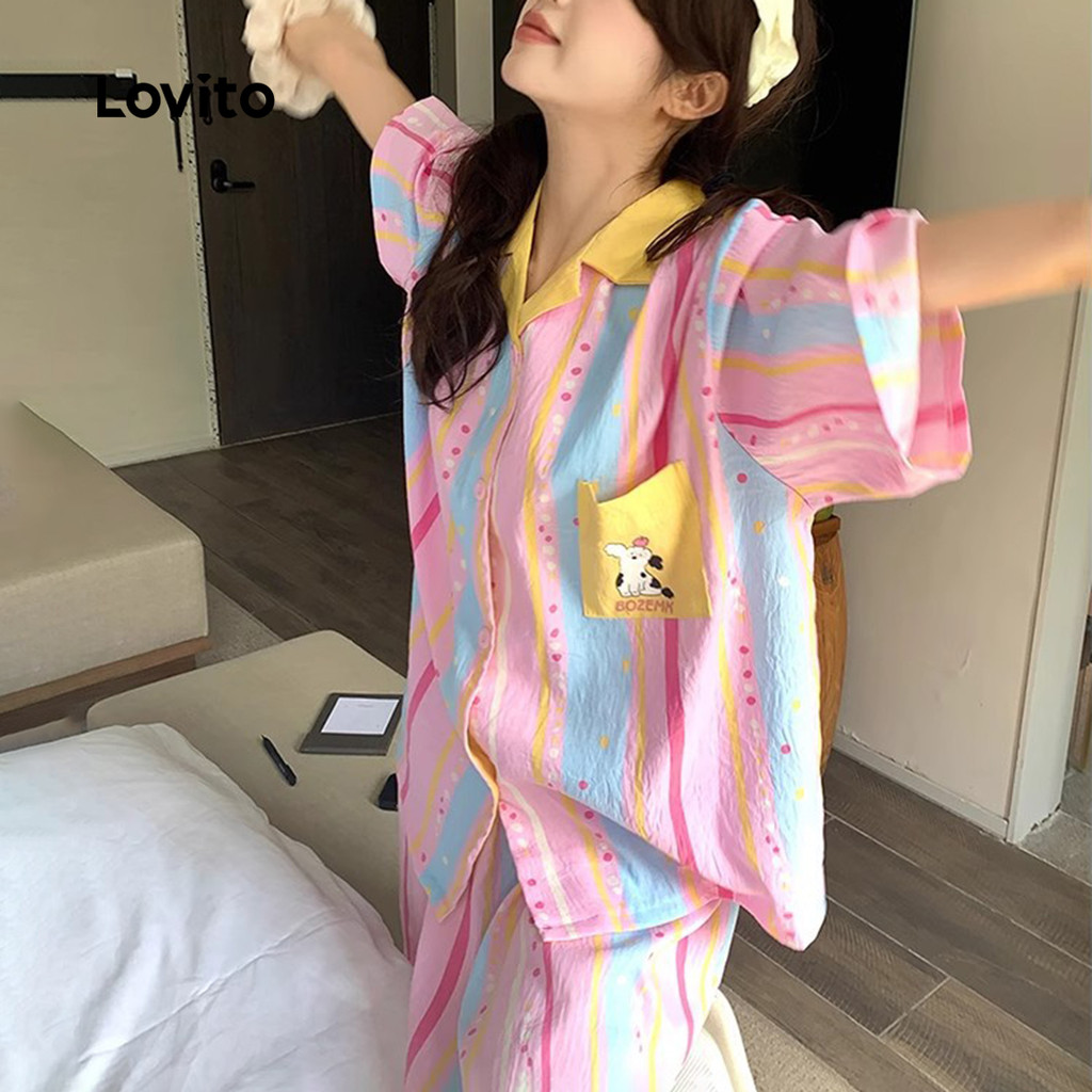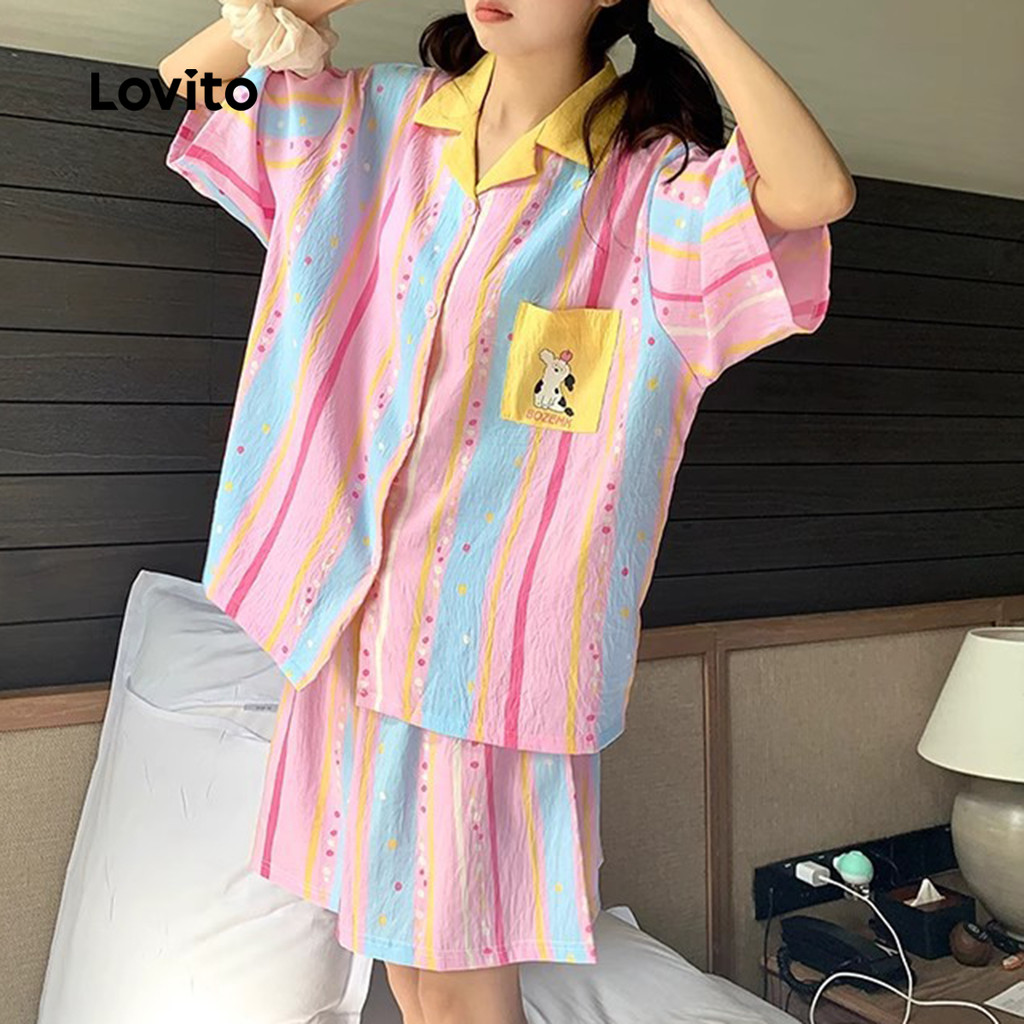 Lovito Women’s Colorful Spring/Summer Sleepwear Sets Lna107X025