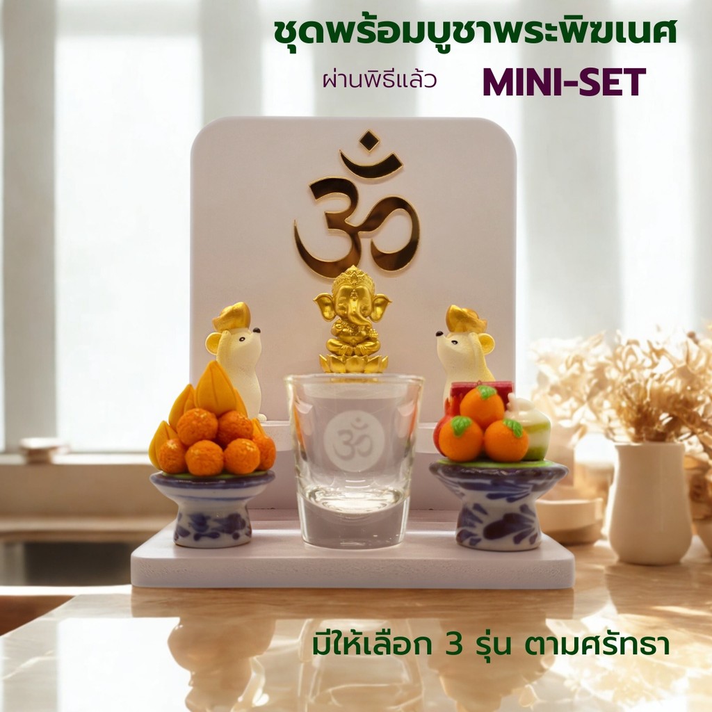 ชุดพระพิฆเนศสายมู รุ่น MINI-SET ขนาดเล็ก พร้อมฐานบูชา ผ่านพิธี มูอย่างมีคลาส