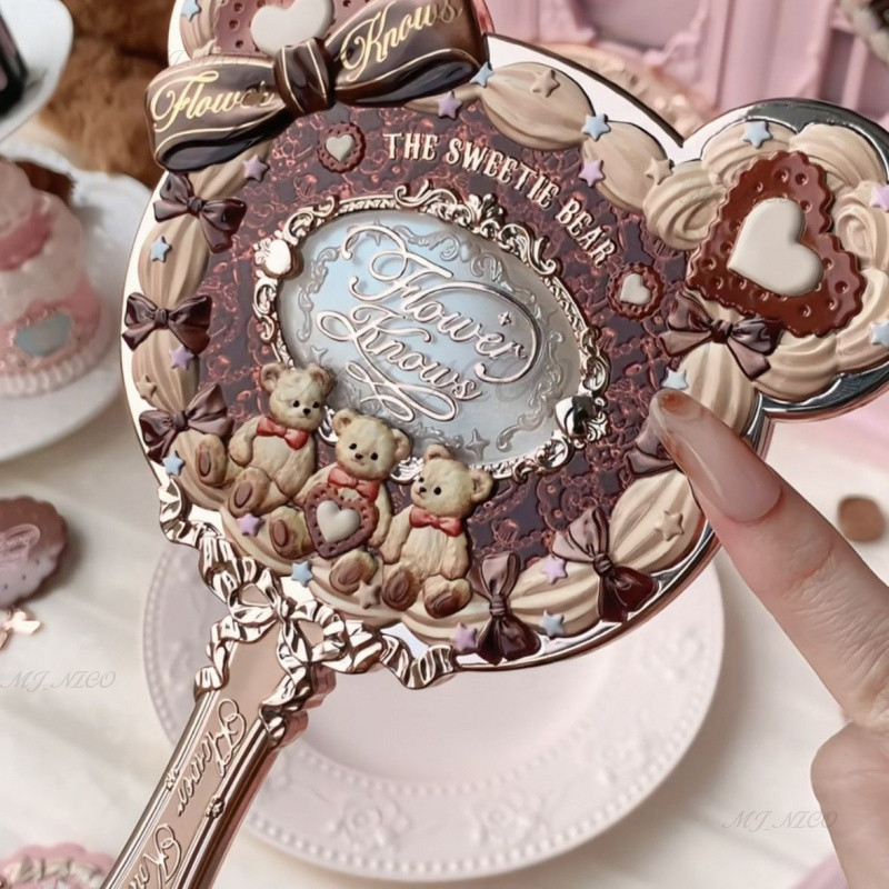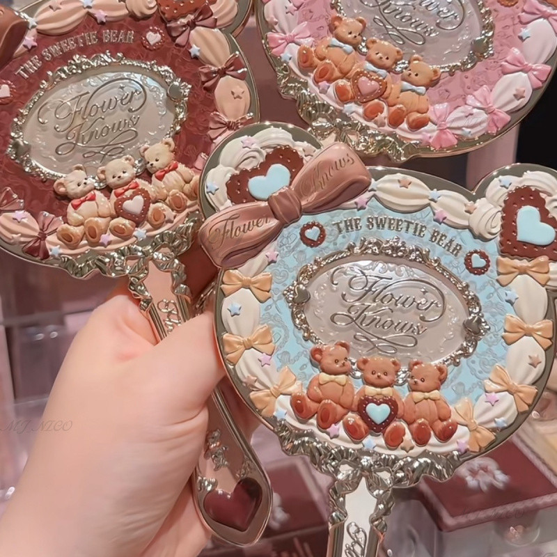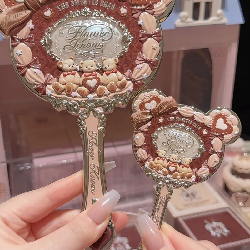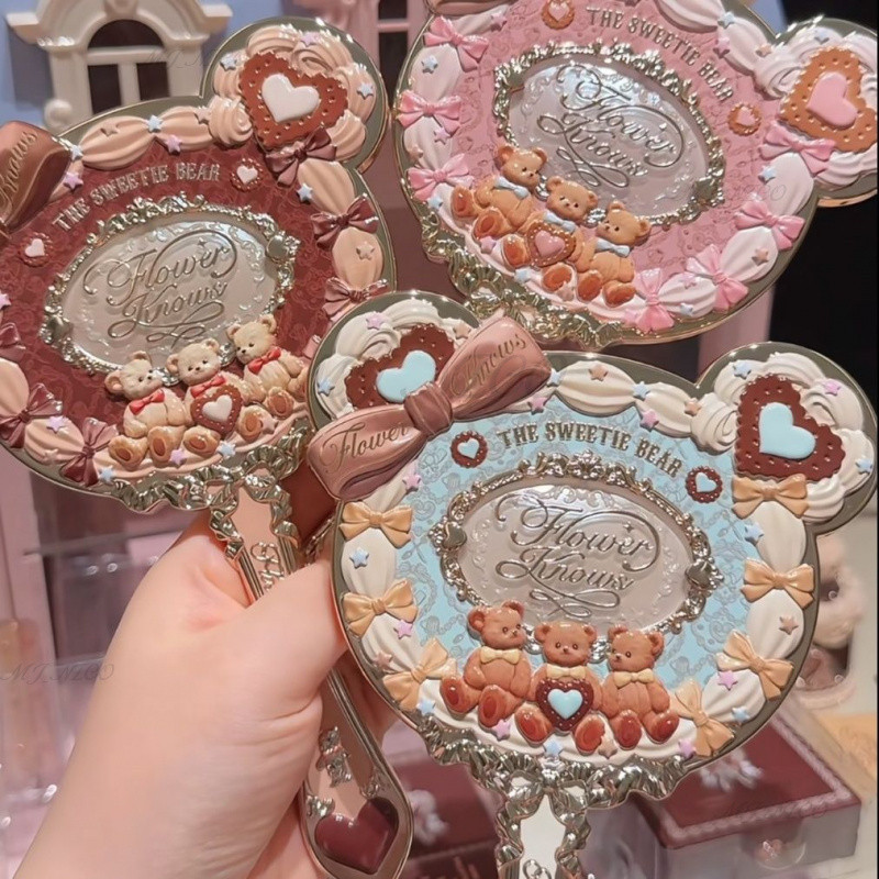 FLOWER KNOWS กระจก Sweetheart Bear Series กระจกมือถือที่สวยงามกระจกแต่งหน้าน่ารัก