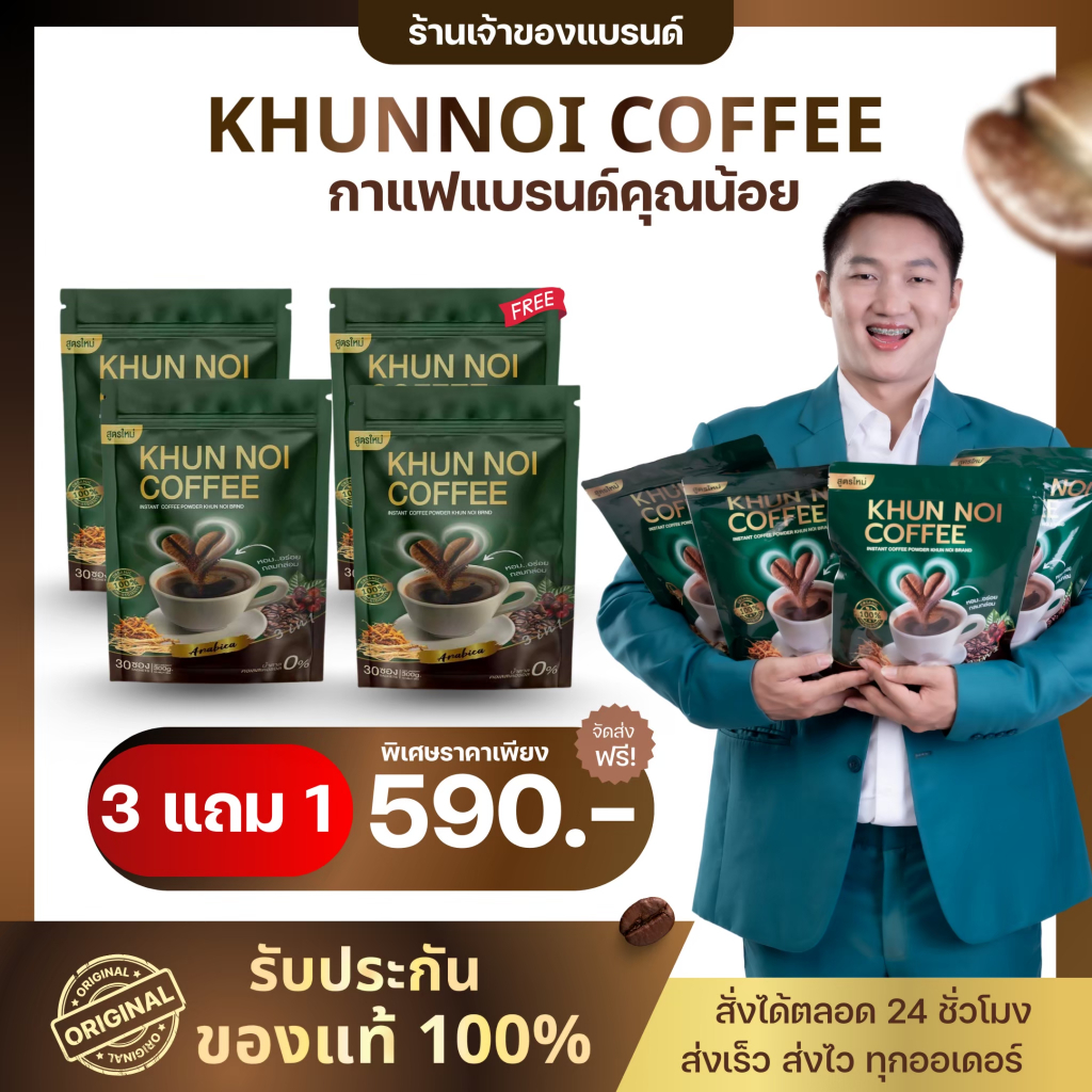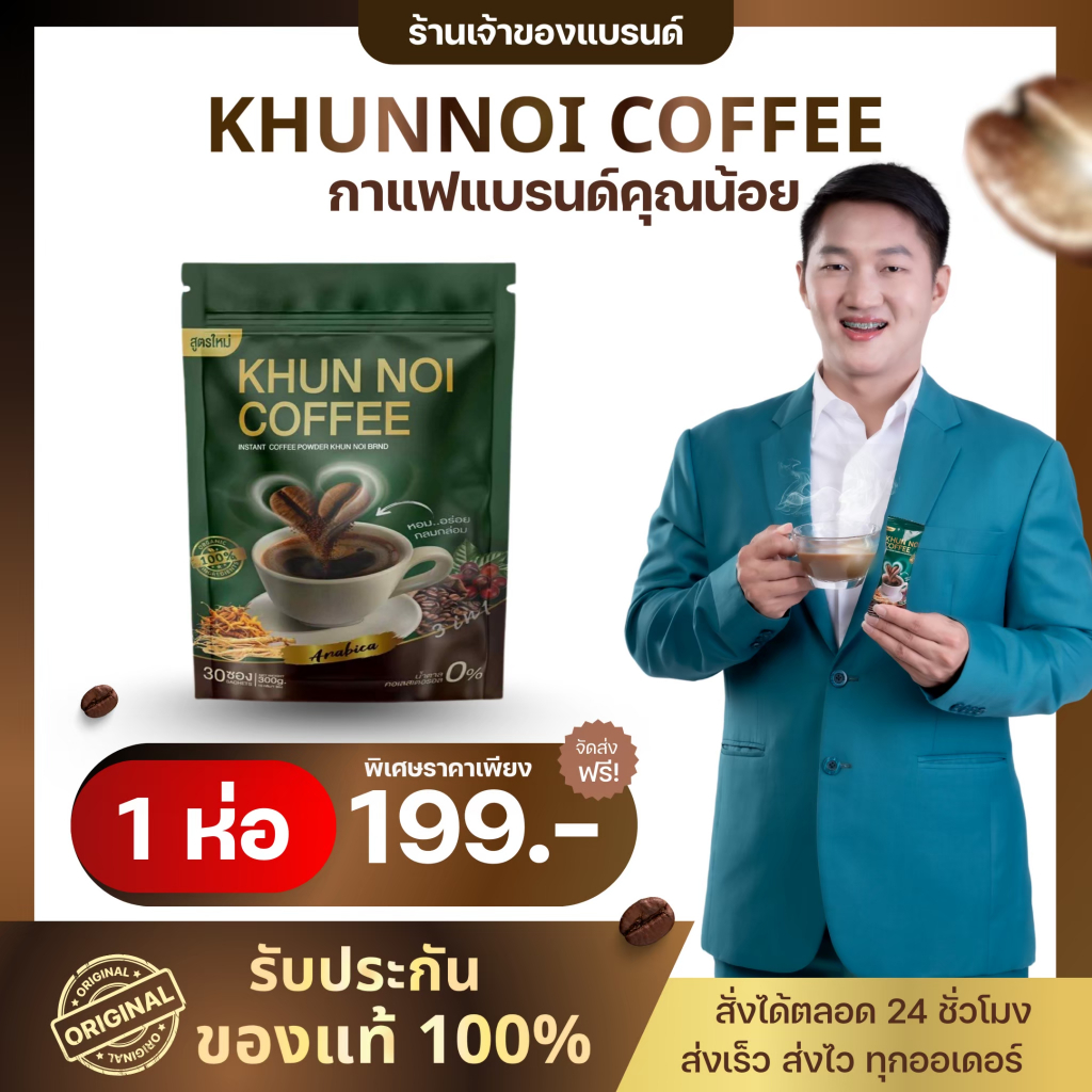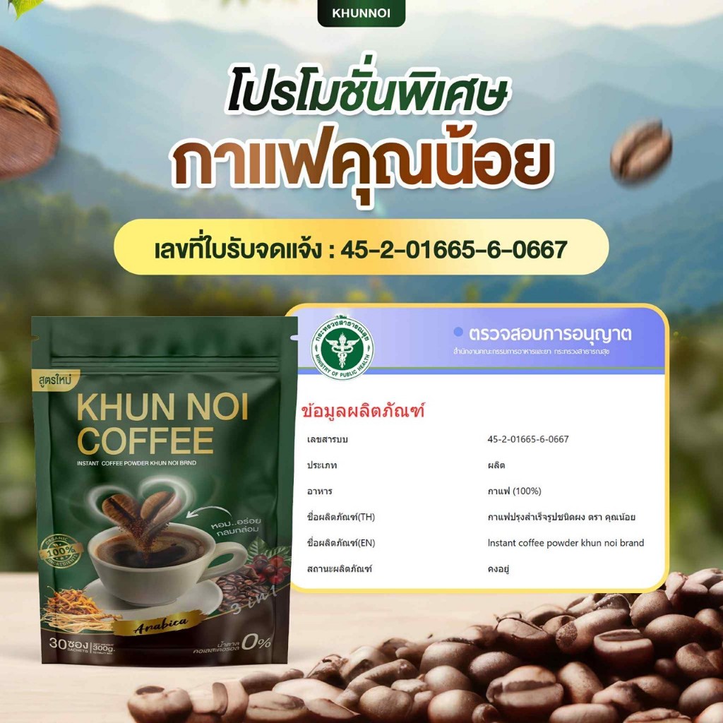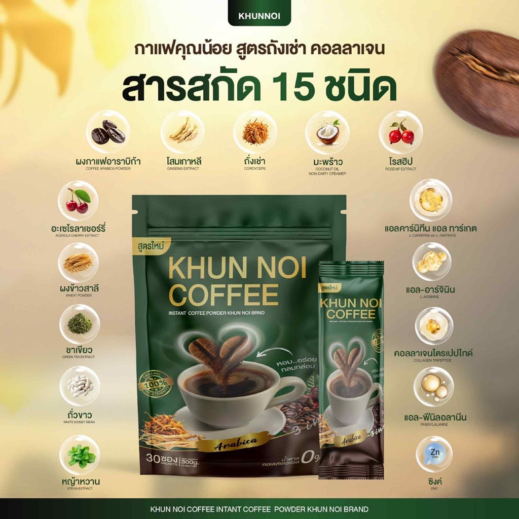 KHUNNOI กาแฟ ตรา คุณน้อย ฟื้นฟูกระดูกข้อต่อ ช่วยเรื่องความดัน เบาหวาน สายตา