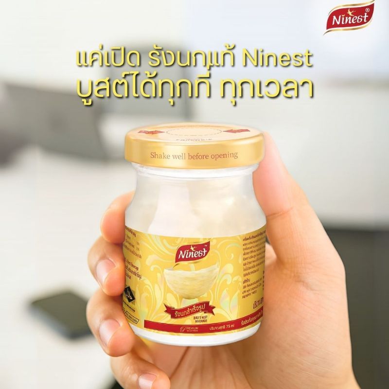 ●Ninest แบรนด์รังนกแท้ ปริมาณเนื้อรังนก 2.8% รังนกสก๊อตรอเยลโกล 75 มล. (แพ็ก 6 ขวด) น้ำตาลกรวด สูตรคลาสสิค