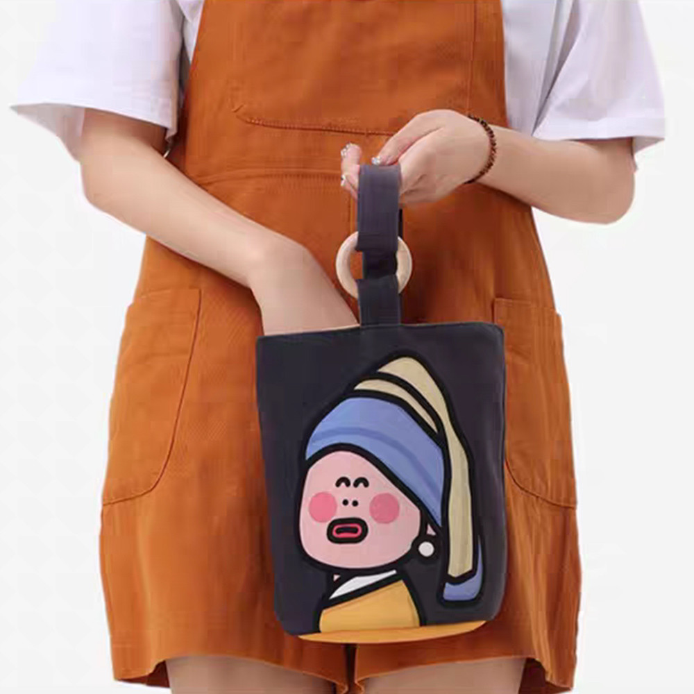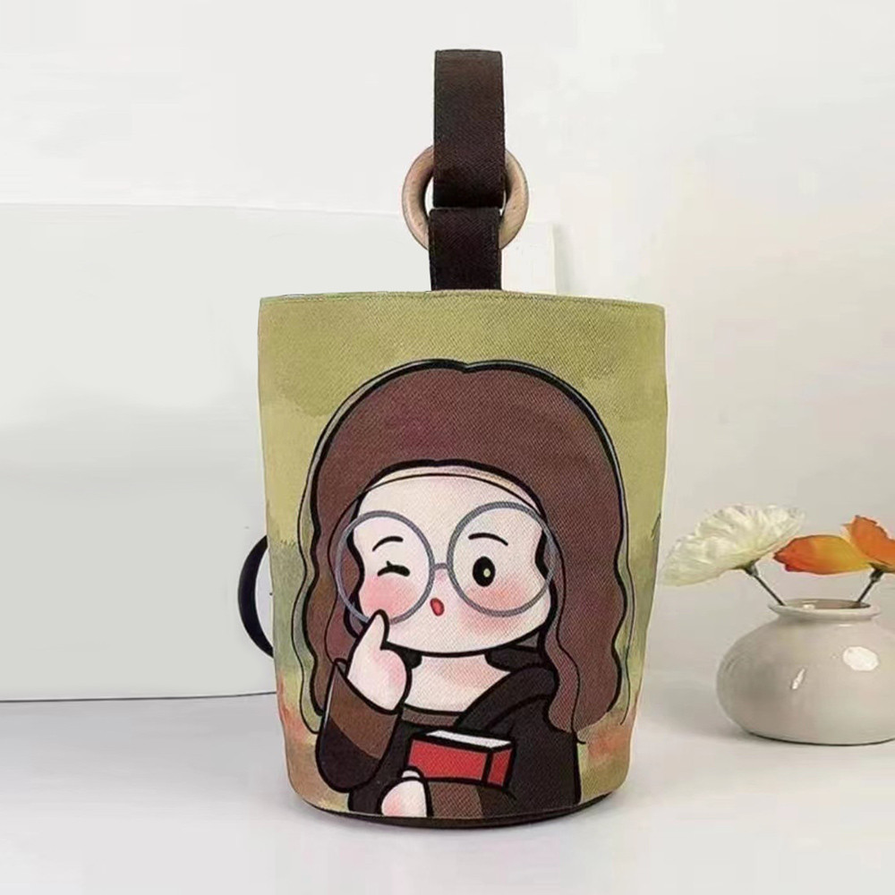 Celebrity Portrait Canvas Tote Artistic ภาพวาดสีน้ํามันการ์ตูน Bucket Bag Heavyweight