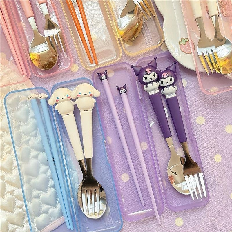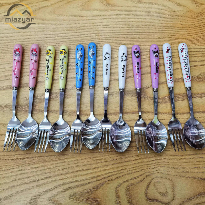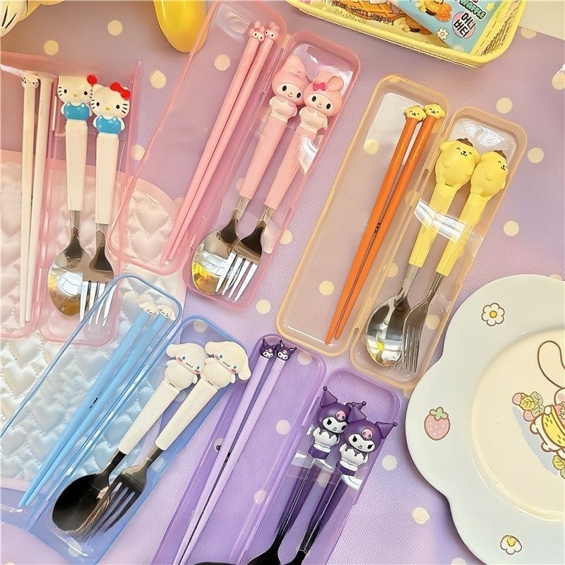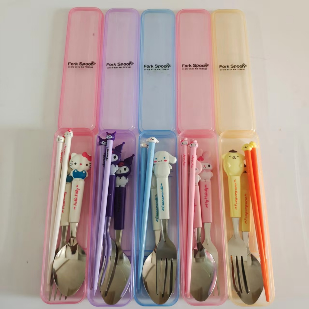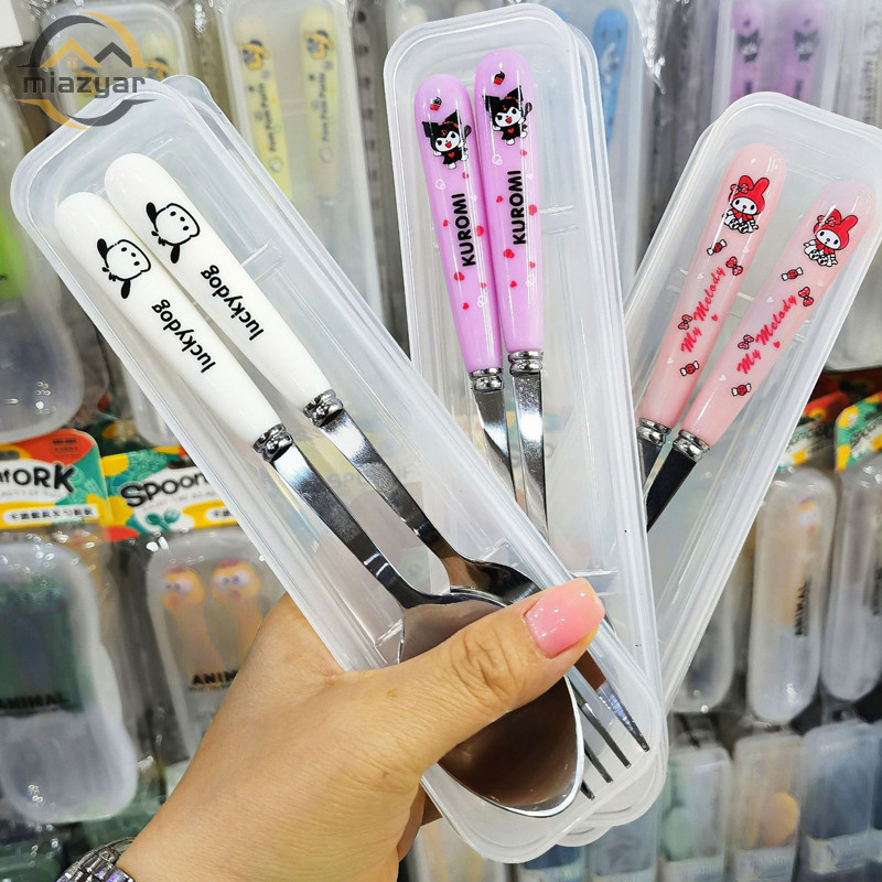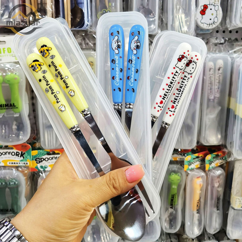 ?COD?ชุดช้อมส้อมสแตนเลส พร้อมกล่อง ลายการ์ตูน ชุดช้อนส้อมพกพาเด็ก