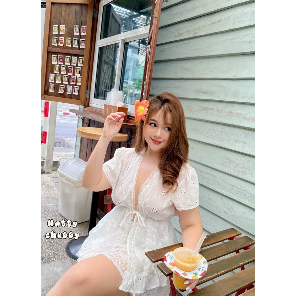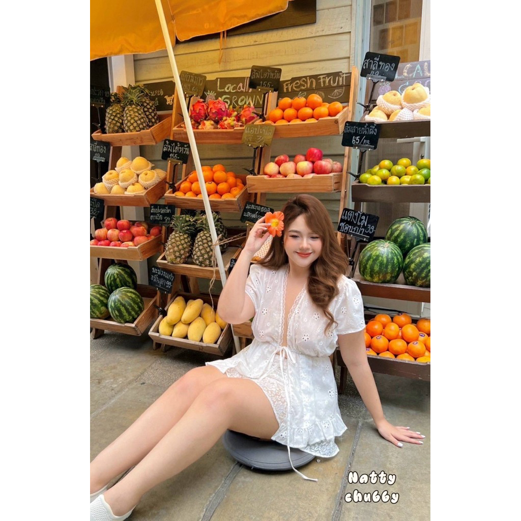 (ส่วนลดvideo/มีส่งด่วน!⚡️) Mira Top?️⛱️(NT) เสื้ิอผูกหน้าลายฉลุลูกไม้ซัมเมอร์ สาวอวบไซส์ใหญ่ (อก36-48)
