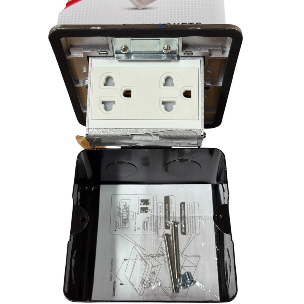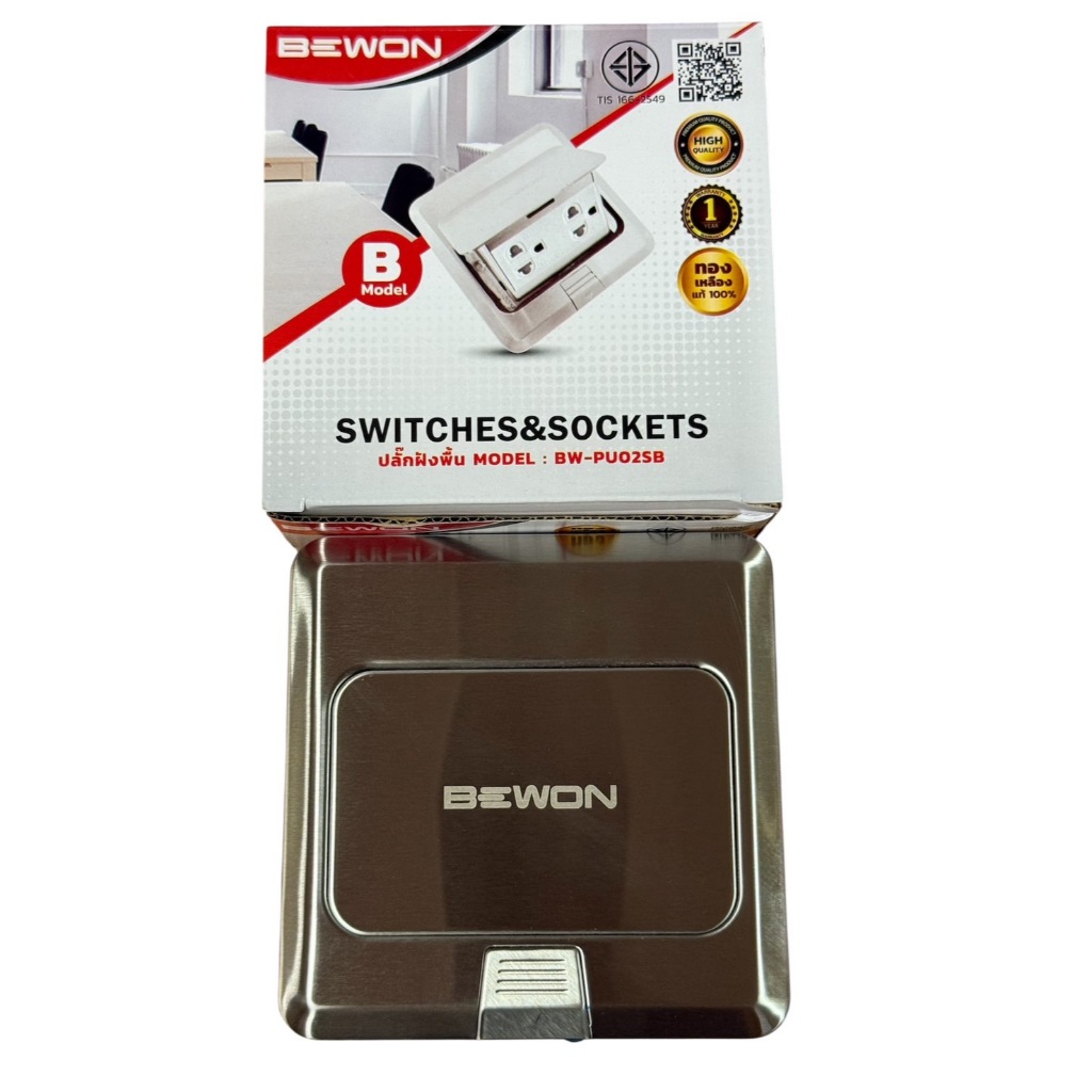 Bewon ปลั๊กป๊อปอัพ ฝังพื้น รุ่น B แบบสปริง พร้อมเต้ารับ กราวน์คู่ ปลั๊กฝังพื้น BW-PUO2SB Floor Socket pop upราคาส่ง549.-