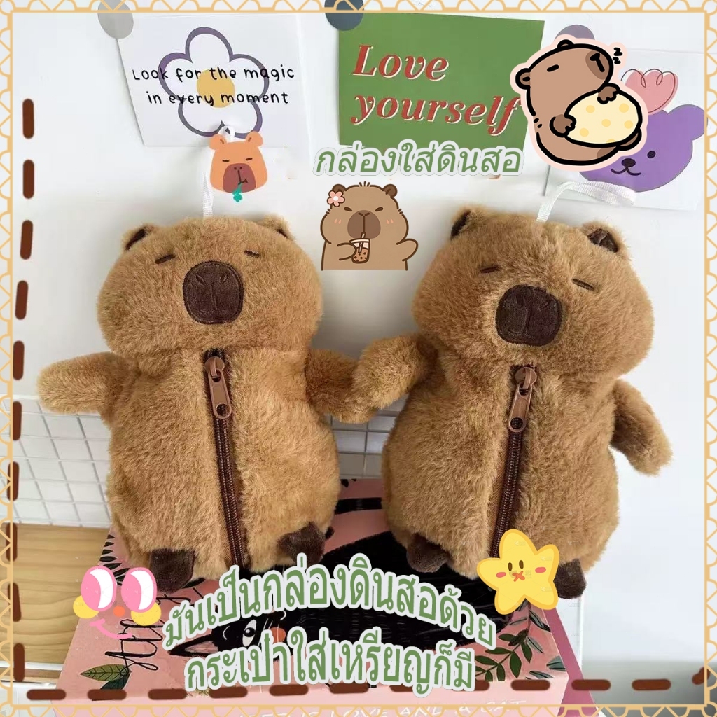 Capybara Plush ปากกากระเป๋า,ขนาดใหญ่ความจุตุ๊กตาสัตว์การ์ตูน Capybara ตุ๊กตาตุ๊กตา, นักเรียนเขียนเครื่องมือนุ่มน่ารักซิป