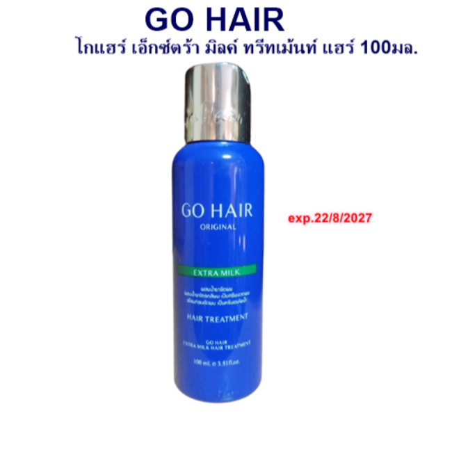 GO HAIE ซื้อ2แถม1 โกแฮร์ เอ็กซ์ตร้า มิลค์ ทรีทเม้นท์ แฮร์ 100มล. exp.22/8/2027 ครีมน้ำนมสูตรพิเศษ Go Hair Extra Milk Treatment Hair ครีมนวดผมสูตรพิเศษ เพื่อการฟื้นฟูผมแห้งเสียให้กลับมามีสุขภาพดีอย่างรวดเร็ว สำหรับเส้นผมที่ผ่านการทำเคมี แห้งเสียมาก ช่ว