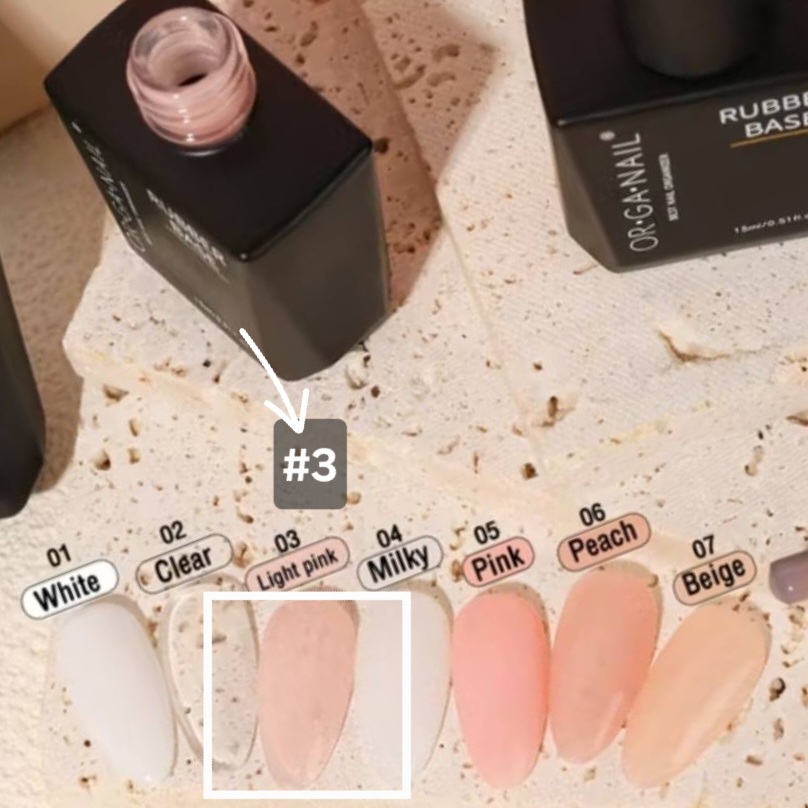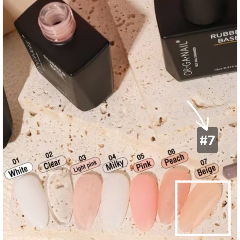 Organail Color Rubber Base gel 15ml. หลายตัวเลือก เบสเจลติดทน แบบมีสีในตัว