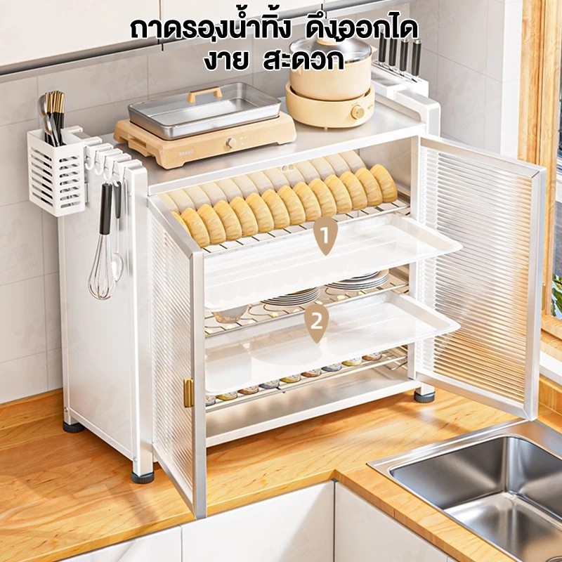 ตู้เก็บจาน หลายฟังก์ชัน ตู้ครัว ป้องกันฝุ่น ที่เก็บจาน 2/3ชั้น ชั้นวางจาน สามารถวางจานชามและมีดได้