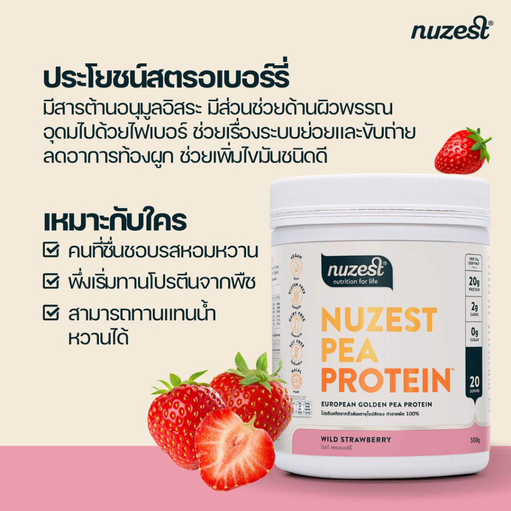 (2 กระปุก) Nuzest Pea Protein นูเซสต์ พี โปรตีน – ขนาด 500 กรัม รสสตรอเบอร์รี่