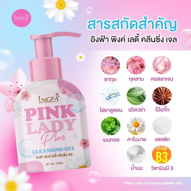 (1แถม1) หัวปั๊ม อิงฟ้าพิงค์เลดี้ คลีนซิ่ง เจล INGFA PINK LADY CLEANSING GEL 150 ml. เลดี้ แคร์