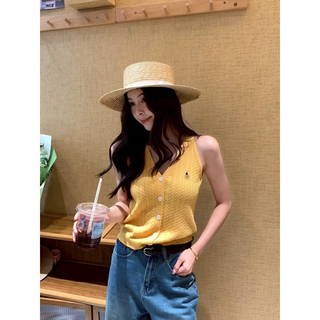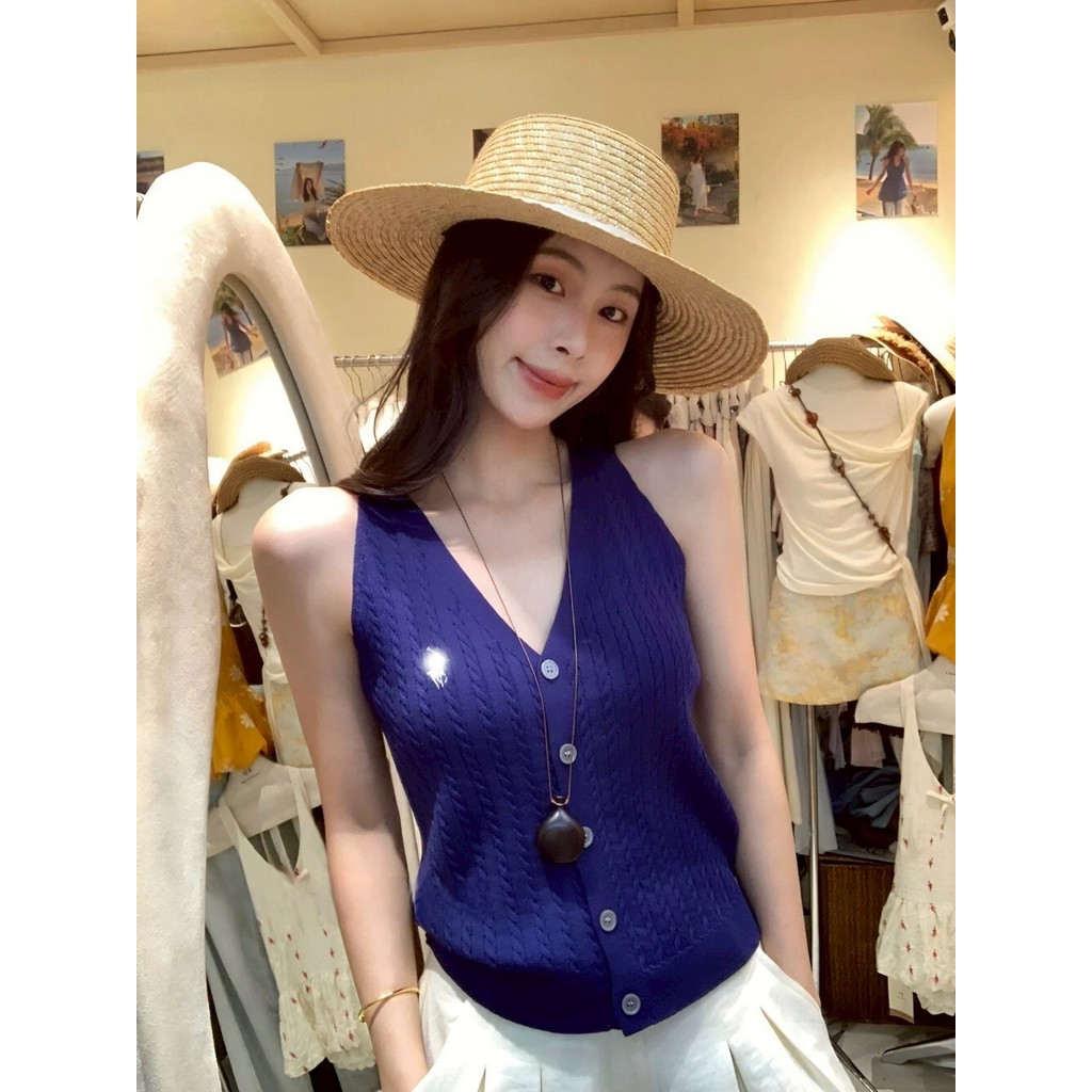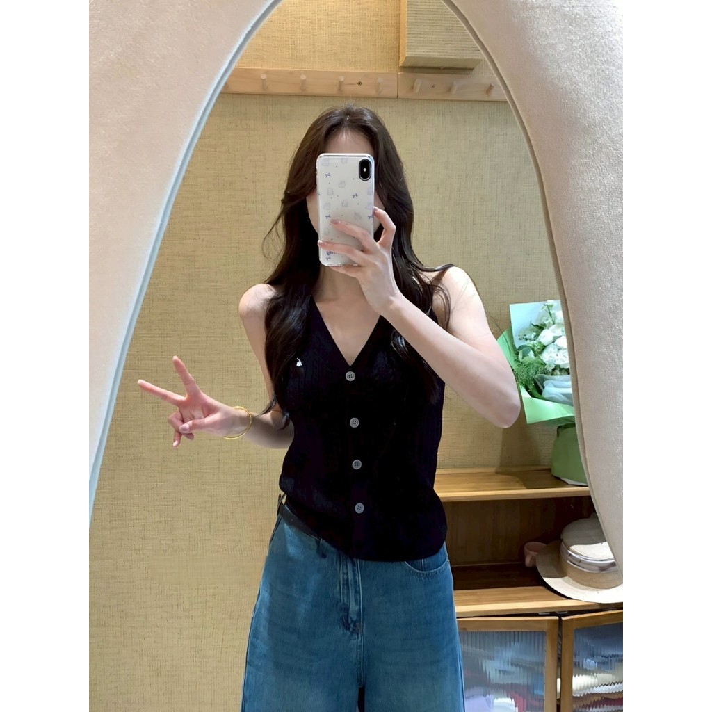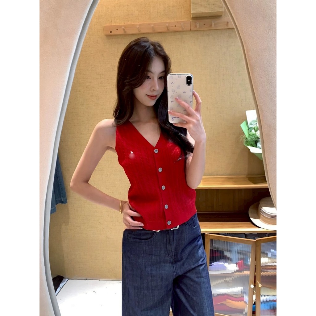 ✨Soroh✨เสื้อกล้าม ไหมพรม แขนกุด ปุ่มด้านหน้า สีสดใส ยืดพอดี?เสื้อครอป สไตล์ลำลอง แฟชั่น?#Z-860