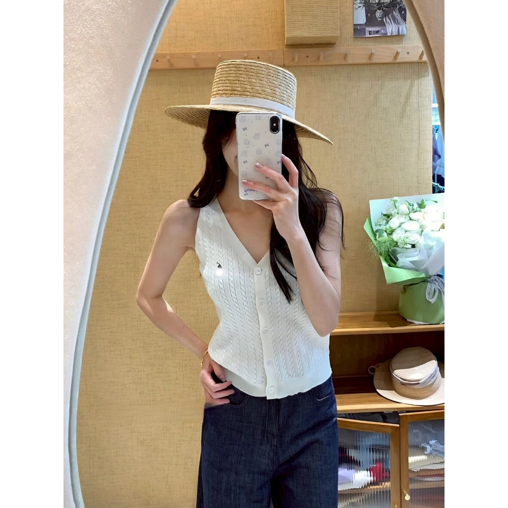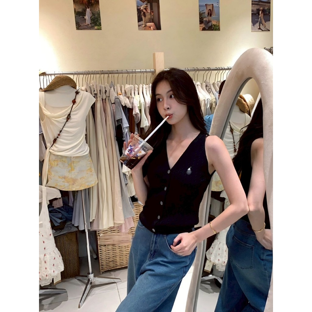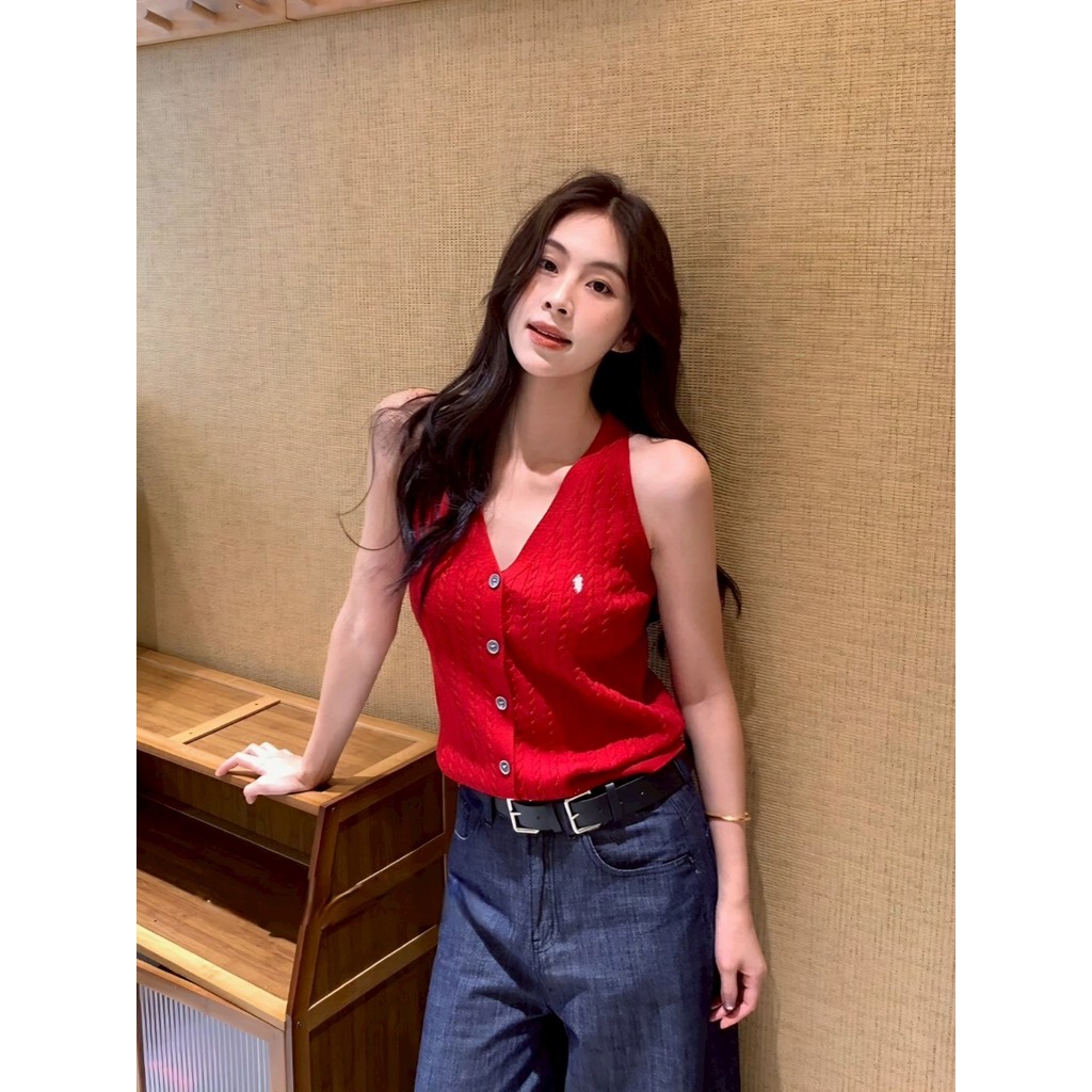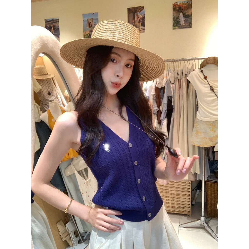 ✨Soroh✨เสื้อกล้าม ไหมพรม แขนกุด ปุ่มด้านหน้า สีสดใส ยืดพอดี?เสื้อครอป สไตล์ลำลอง แฟชั่น?#Z-860