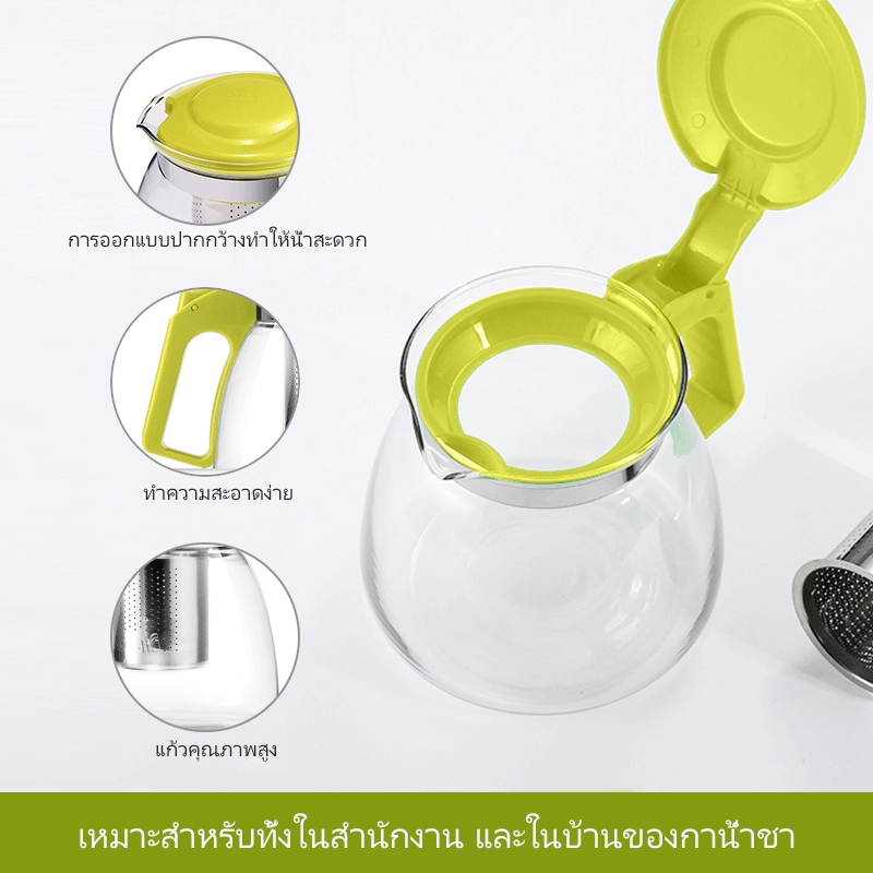 MEHAA กาน้ำชงชา มีที่กรองสแตนเลส กาน้ำชาทรงกลมแบบใส ถ้วยชากา กาน้ำชา 750ml Glass teapot