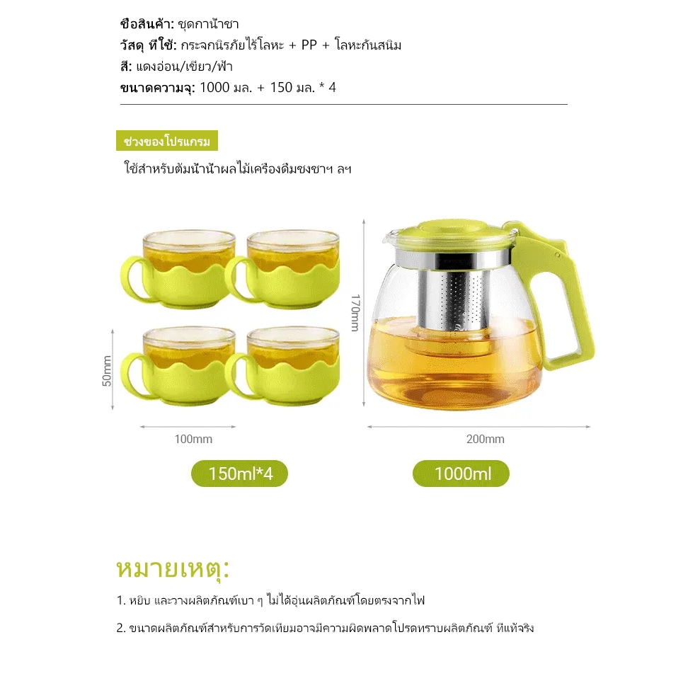 กาต้มชา: ประมาณ 9×12×13 ซม. (ความจุ 700-800 มล.)