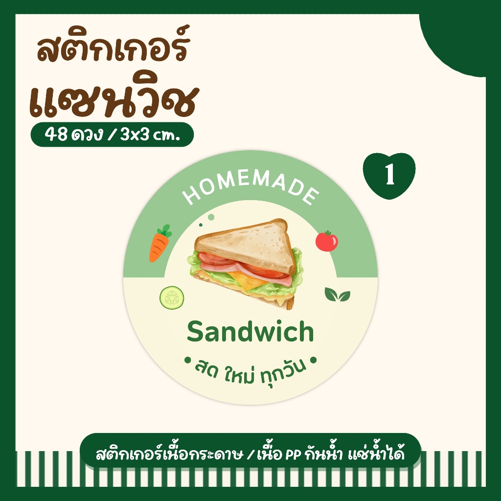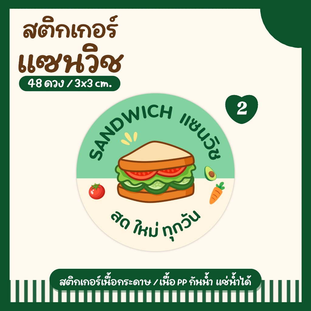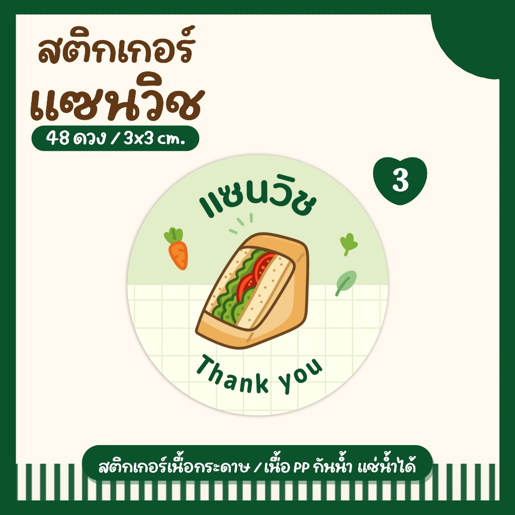 (10 ฟรี 2 คละได้) สติ๊กเกอร์แซนวิช Sandwich Stickers Col.1 ลายน่ารัก พร้อมลอกแปะใช้ได้ทันที สำหรับติดกล่องแซนวิช