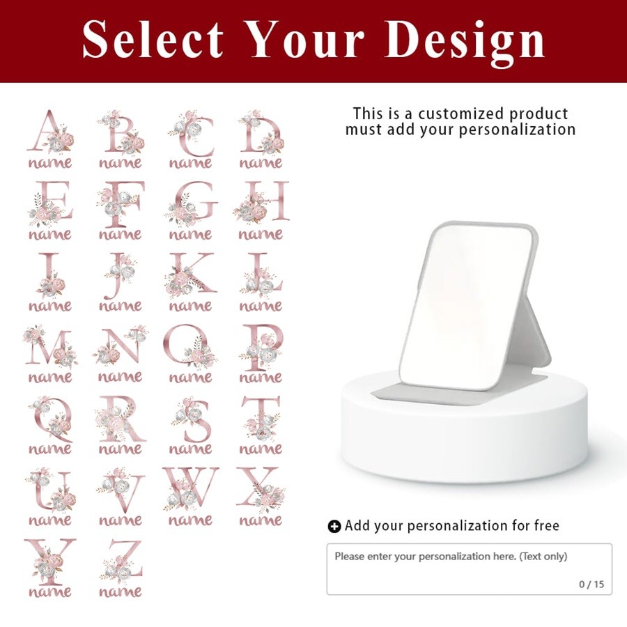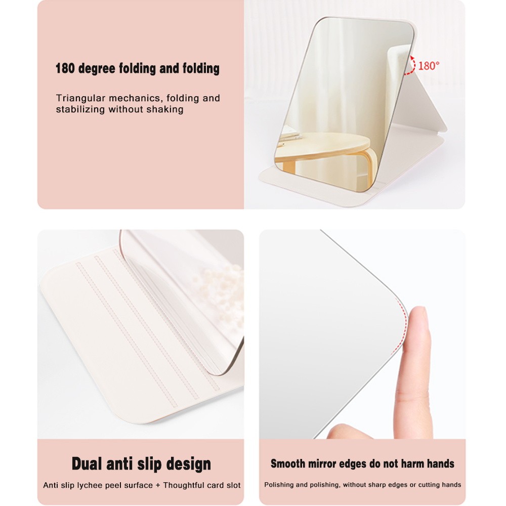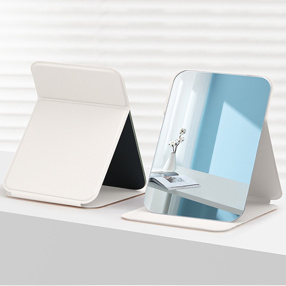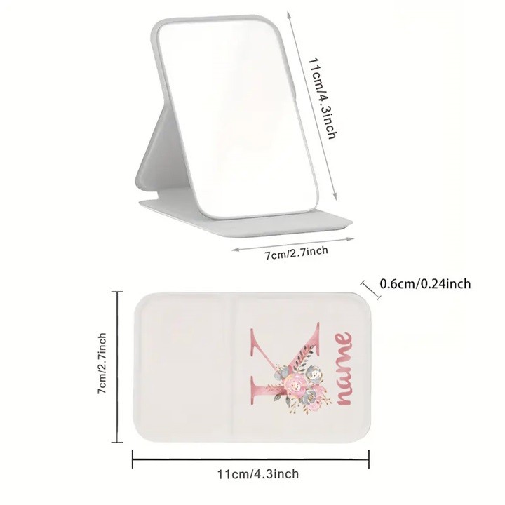 ชื่อที่กำหนดเอง กระเป๋าถือเครื่องสำอาง กระจกมินิ กระจกแต่งหน้าพกพา PU กระจกพกพาพับได้ จำเป็นสำหรับการเดินทาง