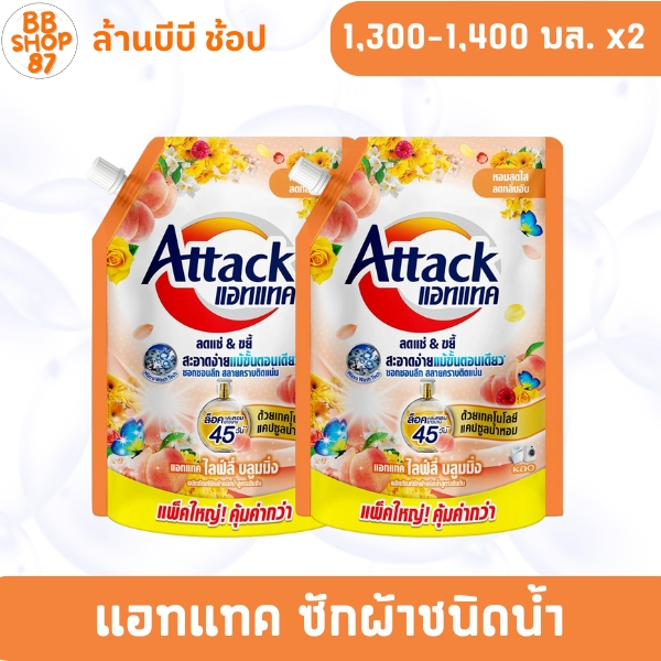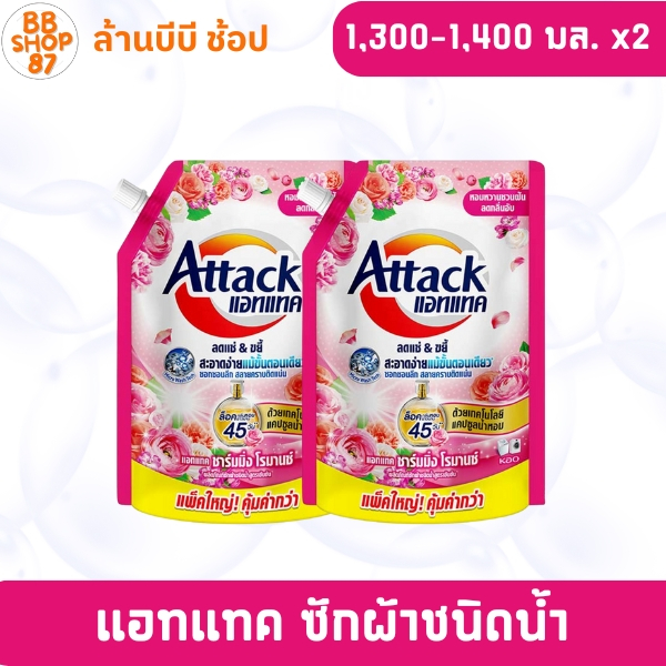 (1ถุง) (2ถุง) แอทแทค ซักผ้าชนิดน้ำ 1300มล. แอทแทค ชาร์มมิ่ง โรมานซ์