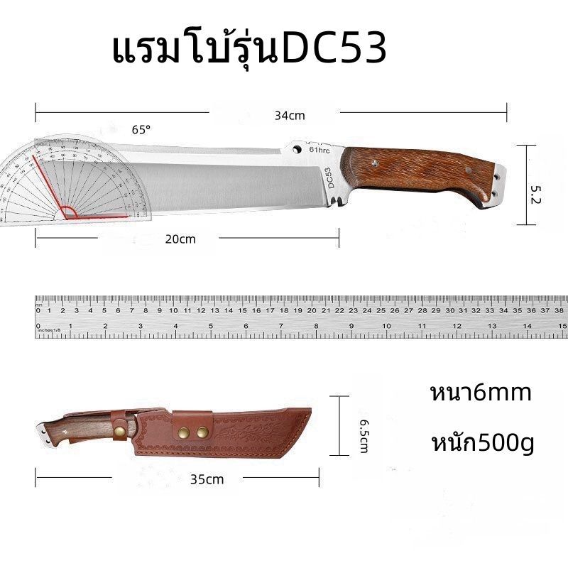 K16 แรมโบ้หัวตัดรุ่นDC53 มีดสับกระดูก มีดเดินป่า ใบมีด8น้ว +พร้อมซอง