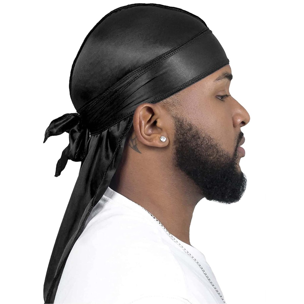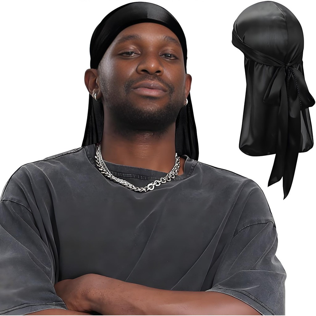 หมวกโจรสลัดซาตินชายและหญิงเลียนแบบผ้าไหมโจรสลัดหมวกผ้าคลุมศีรษะหางยาวหมวก Durag ระบายอากาศเป่าโถวผ้าซาตินเป่าโถวผ้าคลุมศีรษะ