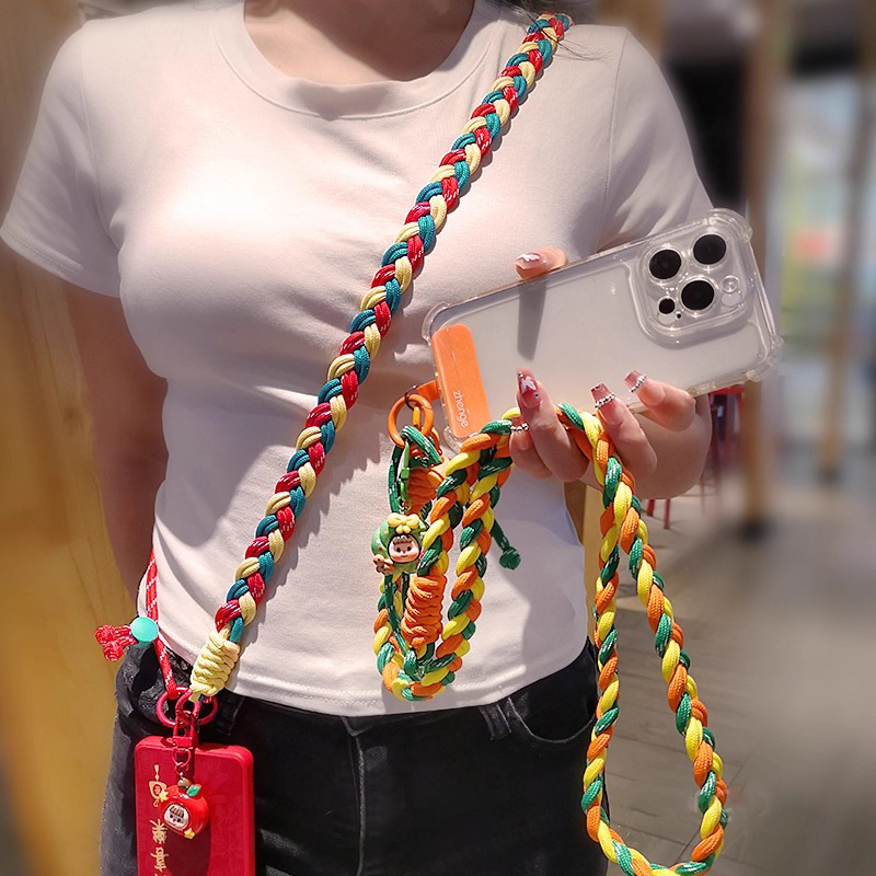 ปรับความยาวได้ DIY ที่มีสีสันถักทอ Crossbody น่ารักสายคล้องโทรศัพท์แฮนด์เมดสำหรับไหล่หรือ Crossbody สวมโซ่โทรศัพท์สำหรับเด็กผู้หญิง / ผู้หญิง