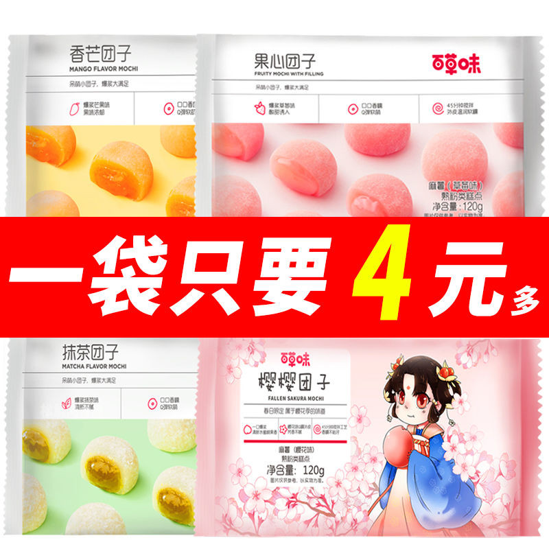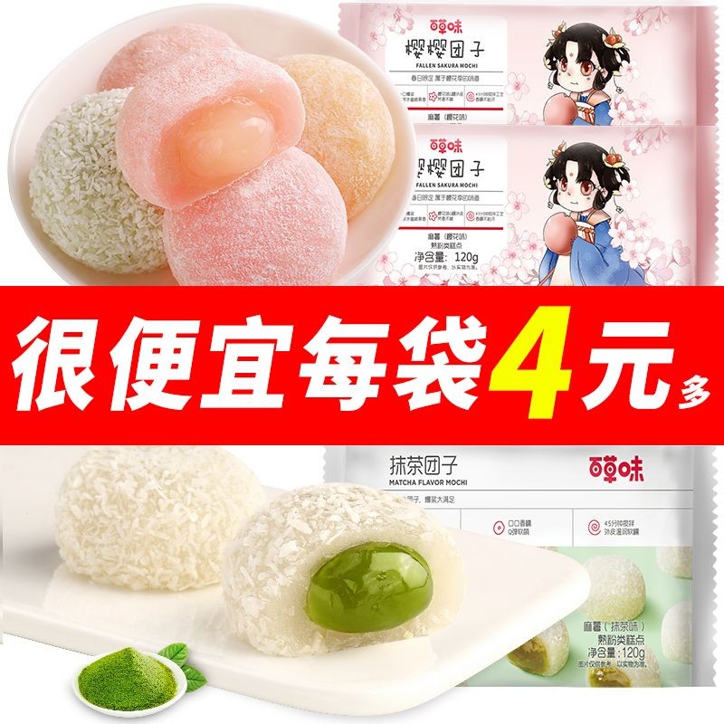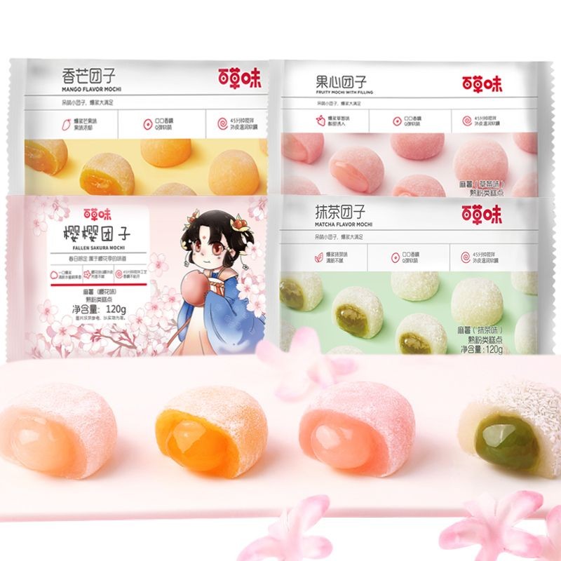 สินค้าใหม่พร้อมสต็อก Baicao รส Mochi 120g ข้าวเหนียวข้าวเหนียว Pop Pulp แซนวิช Mochi Pastry ของว่างสบายๆของว่าง20250914