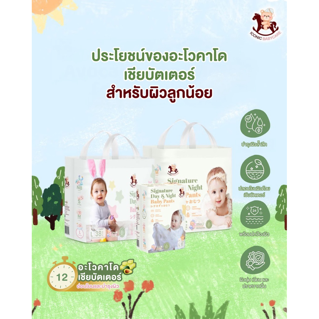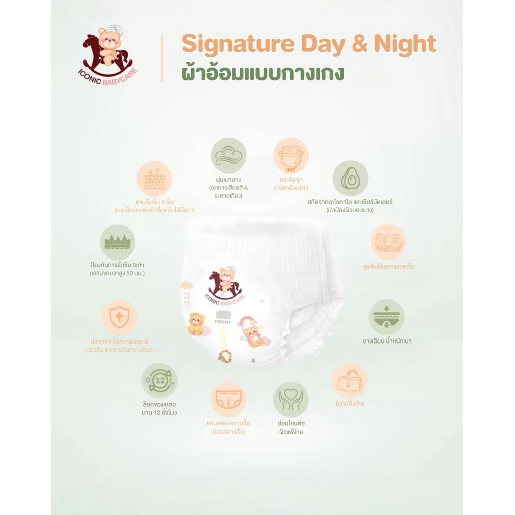แพมเพิส หมีโยก ICONIC BABYCARE รุ่น Signature แบบกางเกง แพ็คใหญ่ 2 แพ็ค ใช้ได้ทั้งกลางวันและกลางคืน