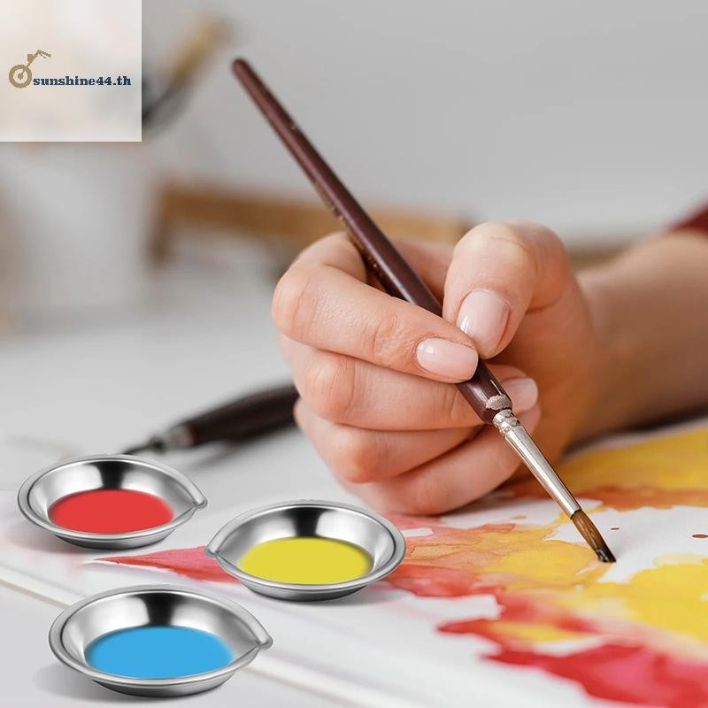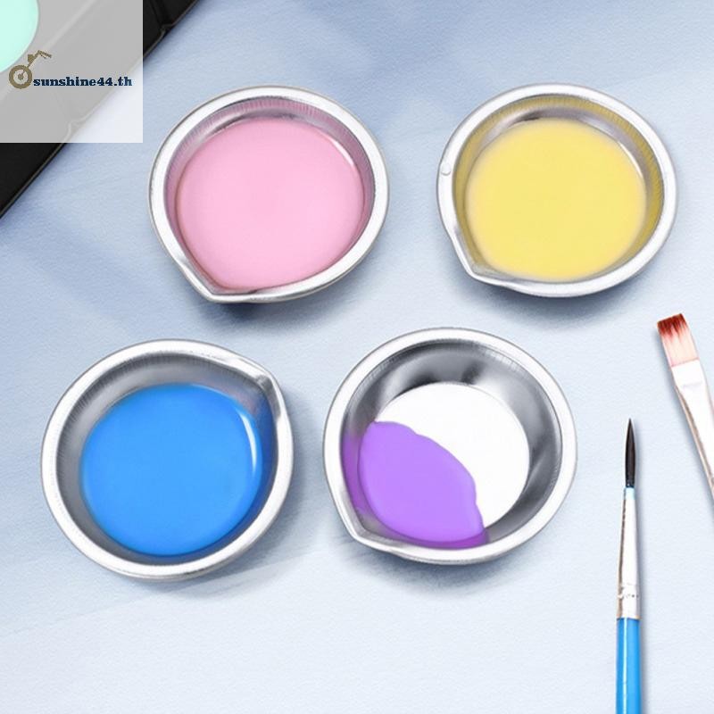 FOURSUN 10 ชิ้นสแตนเลสภาพวาดสีชามสีน้ํามันถาดสีสีผสมถ้วยสีผสมเด็ก DIY ภาพวาดเครื่องมือ TH