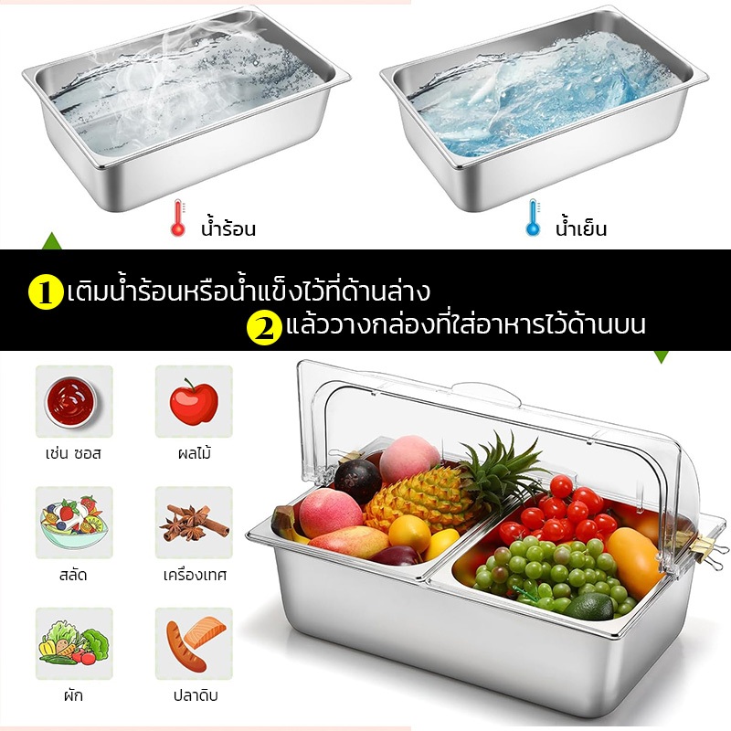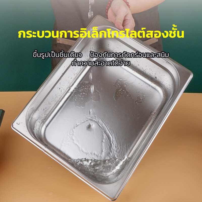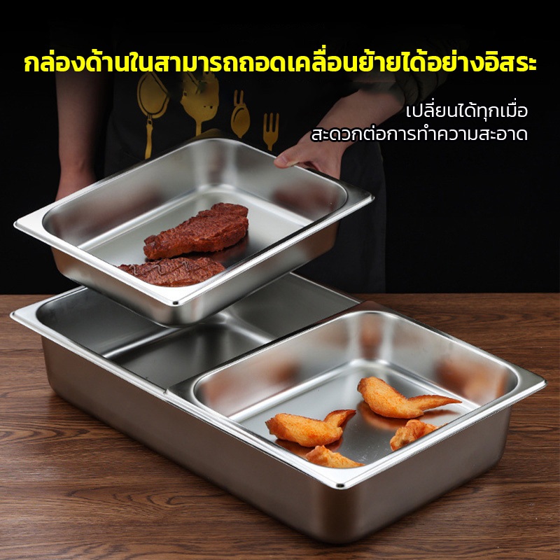 -สแตนเลสสตีลที่ได้รับการอัพเกรด: ทำจากสแตนเลสสตีลหนาเพื่อความทนทานและการกัดกร่อนที่เหนือกว่าจาน chafing แต่ละใบได้รับการทดสอบเพื่อความปลอดภัยและอายุการใช้งานที่ยาวนาน การผสมผสานระหว่างความแข็งแรงของสแตนเลสสตีลและพื้นผิวกระจกเงาที่หรูหราจึงได้รับการออกแบบต