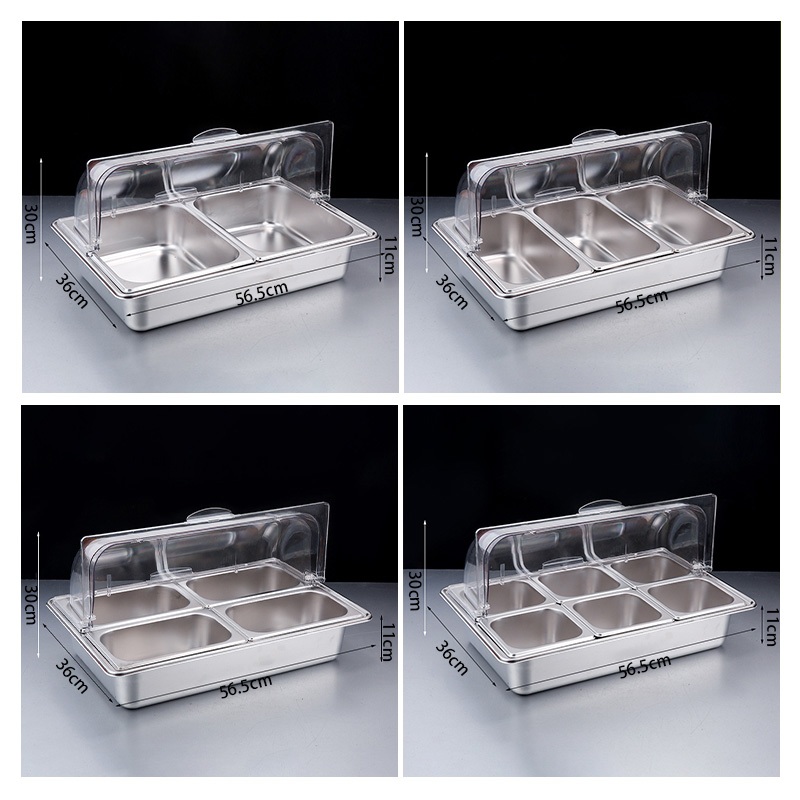 ถาดเก็บความร้อนอาหารสแตนเลส 6ภาชนะช่องถอดได้ เครื่องปรุงเซิร์ฟเวอร์สําหรับงานปาร์ตี้ ถาดเสิร์ฟเครื่องปรุงสําหรับบาร์บ