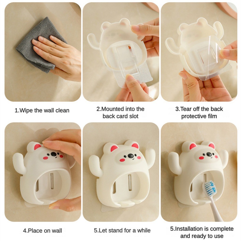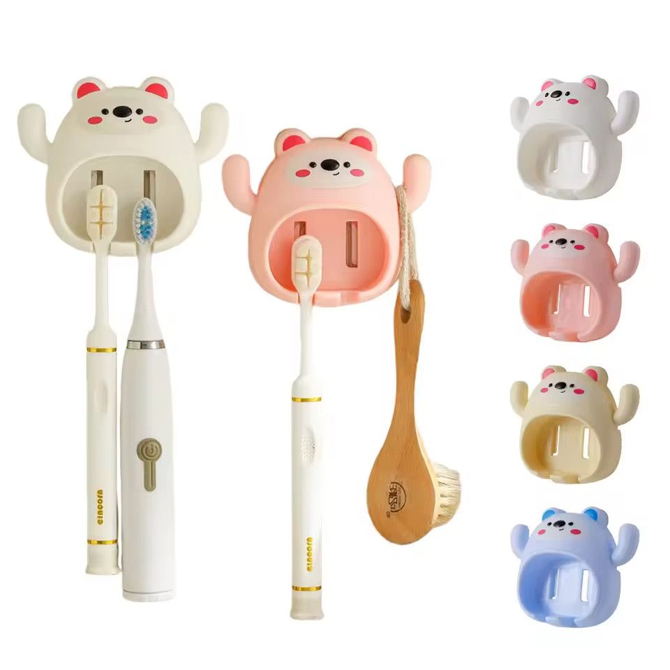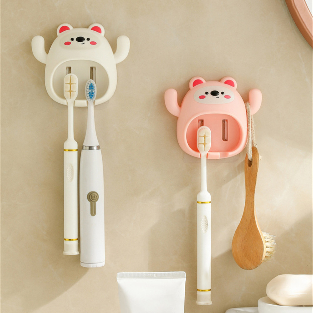 ที่วางแปรงสีฟันลายการ์ตูนหมีน้อย ชั้นวางแปรงสีฟัน ชั้นวางแปรงสีฟันติดผนัง ที่วางแก้วแปรงสีฟันในห้องน้ำ TH