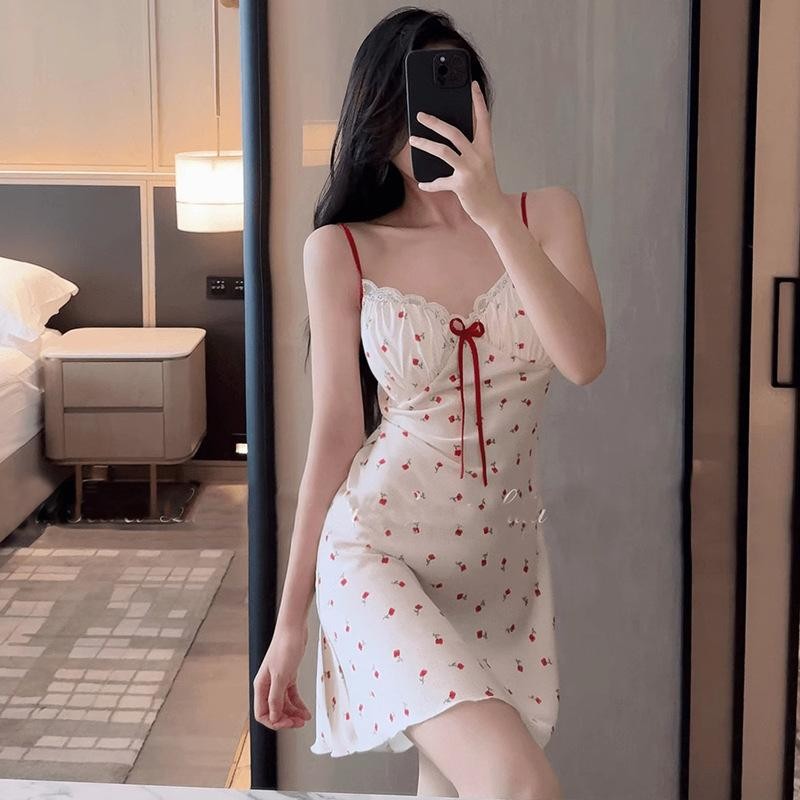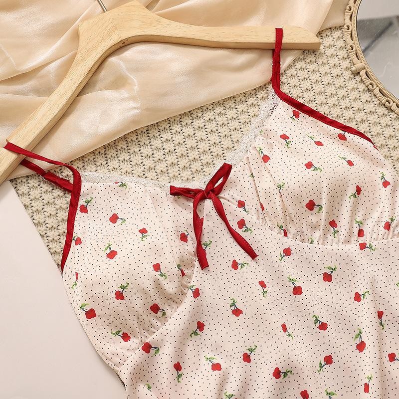 [พร้อมส่ง] ? LUNE รหัสสินค้า#807 ชุดนอนสายเดี่ยวลายเชอร์รี่ ผ้าซาตินเย็น น่ารักเซ็กซี่ สายเกาหลี