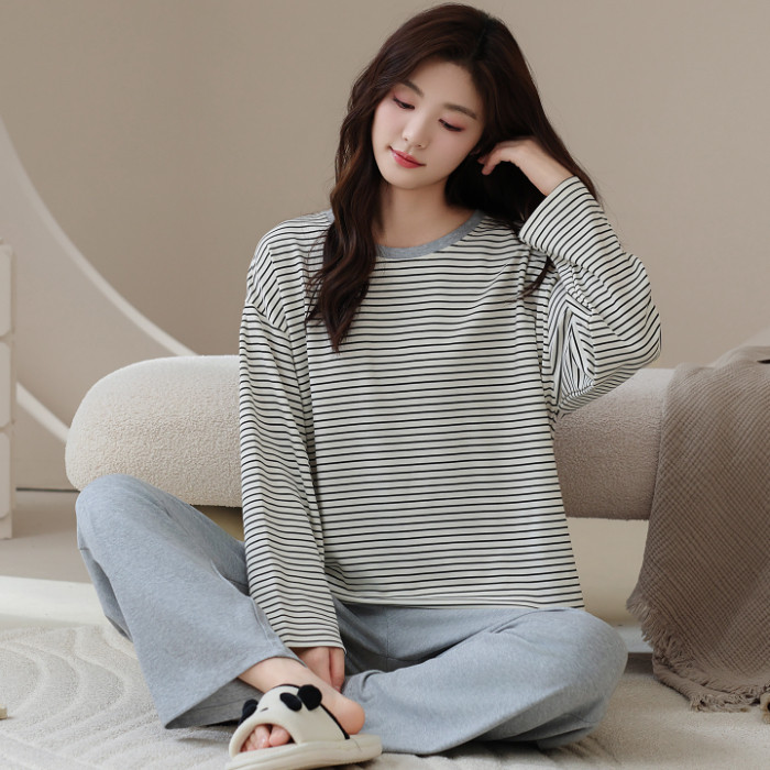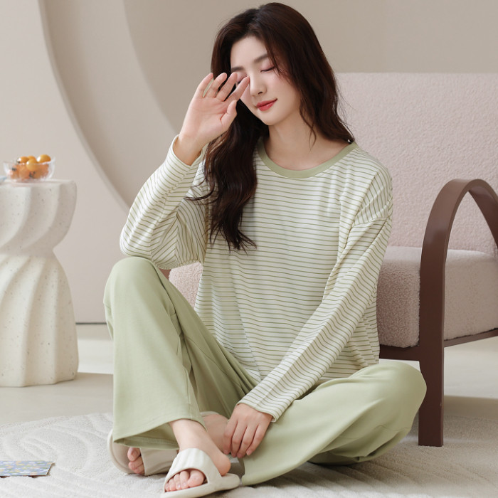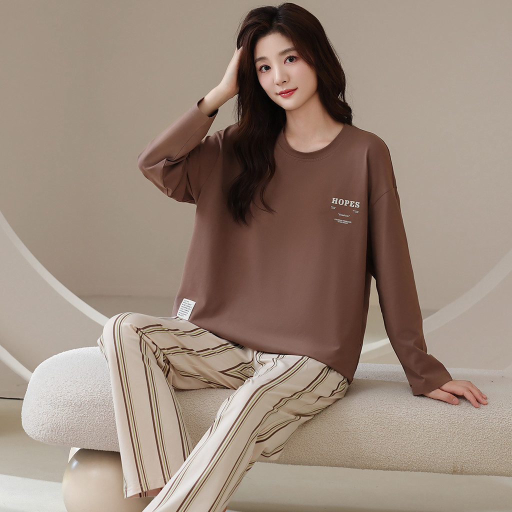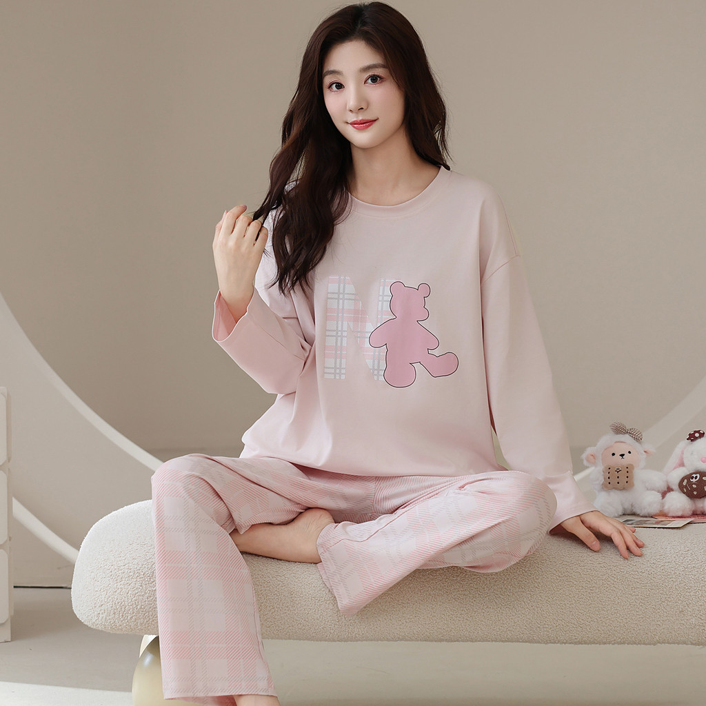 ชุดนอนผ้าฝ้าย 100% ทรงหลวมแขนยาว สำหรับฤดูหนาว ออกแบบให้ใส่ง่าย